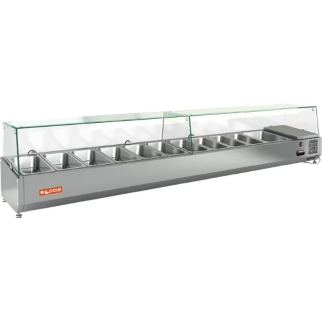 Каталог оборудования Холодильное оборудованиеВитрины для ингредиентовВитрина холодильная для ингредиентов HICOLD VRTG 2360 1/3 Витрина холодильная для ингредиентов HICOLD VRTG 2360 1/3 Код товара: 064-449 Поделиться: WhatsAppTelegram СравнитьДобавить в КПВ избранное 0 89 847 ₽ В корзину 0 шт Под заказСамовывоз сегодня бесплатно Взять в кредит Купить в лизинг Получить консультацию в WhatsApp Описание Характеристики Отзывы 0 Инструкции 2 Витрина холодильная для ингредиентов HICOLD VRTG 2360 1/3 предназначена для охлаждения, кратковременного хранения и наглядной демонстрации ингредиентов, салатов и готовых блюд на предприятиях общественного питания и в торговых точках. Гастроёмкости в комплект не входят, приобретаются отдельно. Основные особенности: Корпус выполнен из нержавеющей стали, обеспечивая долговечность и легкость в уходе; Электронная панель управления для точной настройки температуры; Модель с надстройкой из стекла (исполнение G) для удобной демонстрации продуктов; Высота витрины — 225 мм, высота стеклянной надстройки — 205 мм; Вместимость: 10 гастроёмкостей GN1/3 + 1 гастроёмкость GN1/2; Опорные ножки для устойчивой установки на столешнице. HICOLD VRTG 2360 1/3 — компактная и функциональная настольная витрина, идеально подходящая для демонстрации и кратковременного хранения продуктов на профессиональной кухне или в торговой зоне.Изображение товара, представленного на фото, может отличаться от его фактического вида. Показать все Габаритные размеры2360×385×459 ммДиапазон рабочей температурыот +2 до +7 °CДлина2360 ммГлубина385 ммВысота459 ммТип крышкиСтеклянная Гастроемкостей11 штТип гастроемкостейGN1/3, GN1/2 Мощность0,15 ВтНапряжение220 ВТип охлажденияСтатическое Материал изготовленияНержавеющая сталь ХладагентR134 Вес нетто67 кгВес брутто107 кгТип оттайкиРучная Габариты в упаковке2460×485×559 ммБрендHicold Оставить отзыв Еще никто не оставил отзыв на этот товар Инструкция на HICOLD VRTG 2360.pdfДекларация о соответствии.pdf Похожие товары Перейти в каталог Под заказ 56 151 ₽ Витрина холодильная для ингредиентов HICOLD VRTO 1970 1/3 Под заказ 67 745 ₽ Витрина для ингредиентов Polair VT2vEN (1/3) с подсветкой и защитным колпаком Под заказ 58 500 ₽ Витрина для ингредиентов Carboma A40 SM 1,4 (5 GN1/3) В наличии 54 963 ₽ Витрина холодильная для ингредиентов HICOLD VRTU 1485 1/3 В наличии 66 195 ₽ Витрина холодильная для ингредиентов HICOLD VRTG 1485 1/3 В наличии 49 128 ₽ Витрина холодильная для ингредиентов HURAKAN HKN-VRX2000/380 В наличии 64 198 ₽ Витрина холодильная для ингредиентов HICOLD VRTG 1390 к PZ3 (1/3) Под заказ 65 332 ₽ Витрина холодильная для ингредиентов HICOLD VRTU 2360 1/4 С этим товаром покупают В наличии 114 155 ₽ Шкаф холодильный универсальный Polair CV 107-S Под заказ 108 170 ₽ Шкаф морозильный Рапсодия R 750 L Под заказ 413 972 ₽ Камера холодильная Север КХ-26,7 (1,36×8,86×2,72) В наличии 89 976 ₽ Моноблок холодильный среднетемпературный Polair MM115S Под заказ 147 978 ₽ Сплит-система холодильная среднетемпературная Intercold MCM 223/220 FT Evolution (опция -10° С) Под заказ 140 392 ₽ Стол холодильный среднетемпературный HiCold GNE 12/TN О З Под заказ 179 554 ₽ Стол холодильный для пиццы Tatra TPZEN3 STB Под заказ 163 612 ₽ Стол холодильный для салатов HiCold SL1-111GN (1/3) О без крышки