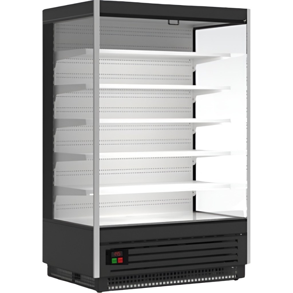 Комплектация для фруктов и овощей: внутренний объем из оцинкованного металла, внутренняя ванна из оцинкованного пластификата (двойная защита от коррозии), электронный контроллер, цифровой термометр, компрессор R‑290, ночная шторка для открытого стеллажа, общее светодиодное освещение, 3 ряда полок с ценникодержателями, выпариватель, боковины с зеркалом, комплект наклонного зеркала, наклонная решетка для базовой полки.