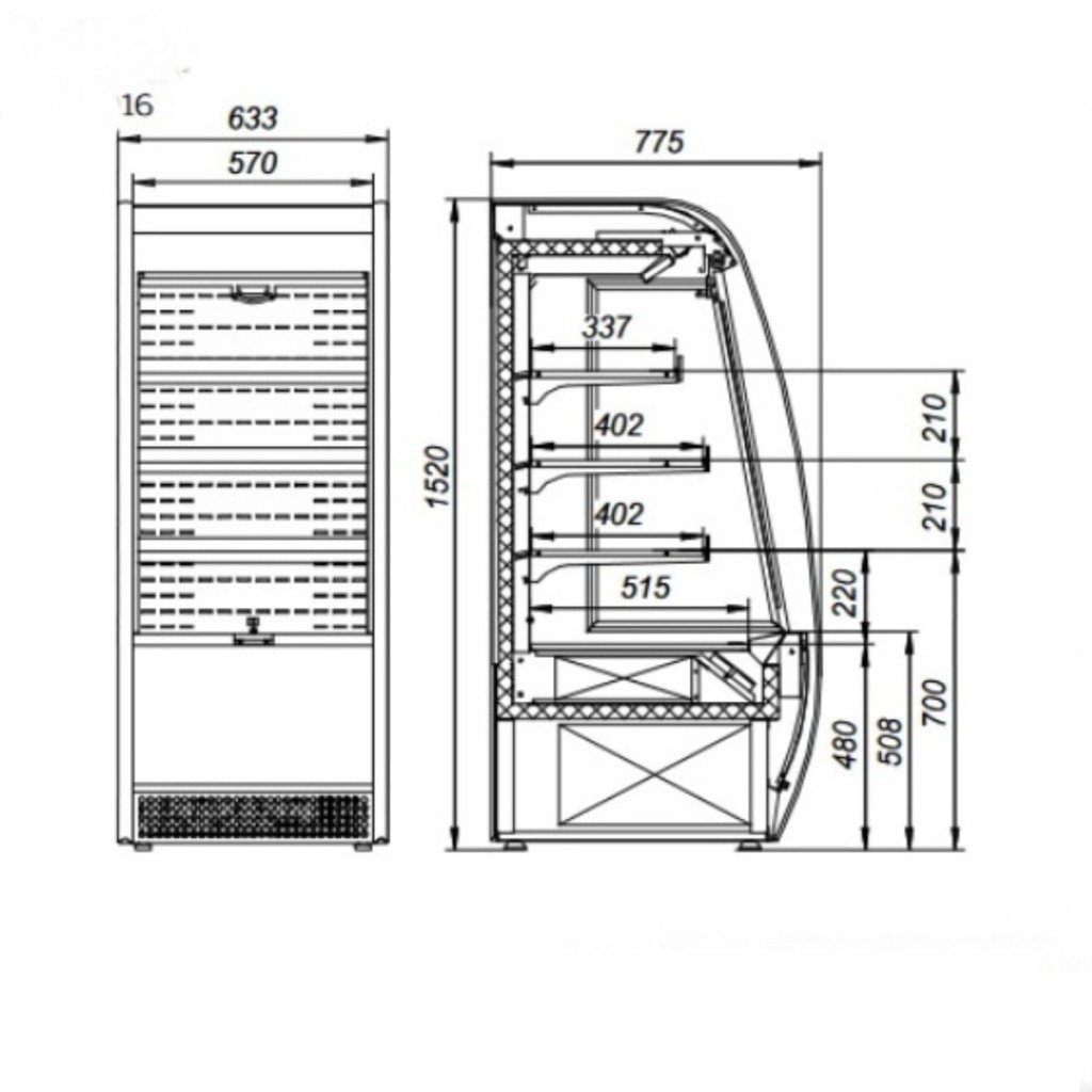 Каталог оборудования Холодильное оборудованиеГорки холодильныеГорка холодильная МХМ Флоренция ВХСп-0,6 mini Горка холодильная МХМ Флоренция ВХСп-0,6 mini Код товара: 063-072 Поделиться: WhatsAppTelegram СравнитьДобавить в КПВ избранное 0 147 985 ₽ В корзину 0 шт Под заказСамовывоз сегодня бесплатно Взять в кредит Купить в лизинг Получить консультацию в WhatsApp Описание Характеристики Отзывы 0 Горка холодильная МХМ Флоренция ВХСп-0,6 mini предназначена для демонстрации, кратковременного хранения и продажи предварительно охлаждённых пищевых продуктов и полуфабрикатов на предприятиях торговли и общественного питания. Особенности: Контроллеры: Carel / Danfoss — обеспечивают точный и надёжный контроль температуры Температура окружающей среды: +12°C до +25°C — подходит для стандартных условий эксплуатации Тип охлаждения: динамическое — равномерное распределение холода по всему объёму Глубина выкладки: 335 + 2×400 + 515 мм — позволяет удобно размещать продукцию Охлаждаемая площадь поддонов и полок: 0,7 м² — достаточная для презентации широкого ассортимента продуктов Способ оттаивания: естественные теплопритоки — простой и экономичный метод разморозки Потребление электроэнергии: не более 17 кВт·ч в сутки Холодообеспечение: встроенное — компактное решение без необходимости в выносном агрегате Компрессор: Secop / Embraco / Tecumseh — проверенные и надёжные производители МХМ Флоренция ВХСп-0,6 mini — функциональное и энергоэффективное оборудование, обеспечивающее качественную демонстрацию и хранение пищевых продуктов. Её динамическое охлаждение и оптимальные размеры делают её удобным решением для предприятий торговли и общественного питания с умеренными требованиями к охлаждению.Изображение товара, представленного на фото, может отличаться от его фактического вида. Показать все Габаритные размеры640×775×1500 ммДиапазон рабочей температурыот +2 до +10 °CДлина640 ммГлубина775 ммВысота1500 ммТип горкиГастрономическая Тип двериБез двери Глубина выкладки335+2*400+515 ммПолезный объем0,13 м3Охлаждаемая площадь0,7 м2Расход электроэнергии в сутки17 кВтХолодообеспечениеВстроенное Напряжение220 ВТип охлажденияДинамическое Тип оттайкиЕстеств. теплопритоками ХладагентR290 Габариты в упаковке900×900×1770 ммВес нетто130 кгВес брутто230 кгБрендМариХолодМашВсе холодильные горки МариХолодМашВсе холодильные горки Флоренция Оставить отзыв Еще никто не оставил отзыв на этот товар