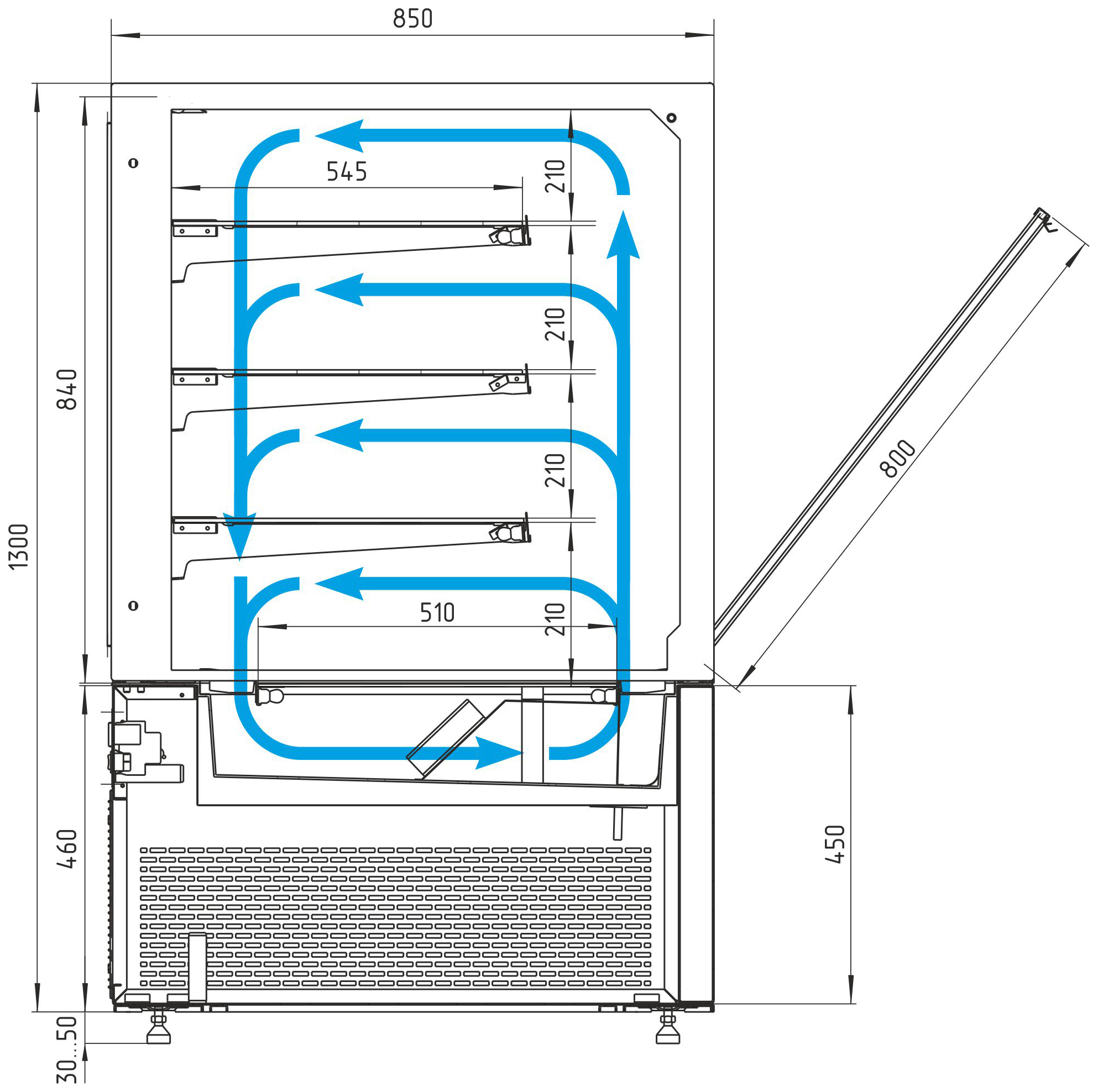 • Откидной передний стеклопакет с углом открытия 40° — удобство загрузки и обслуживания