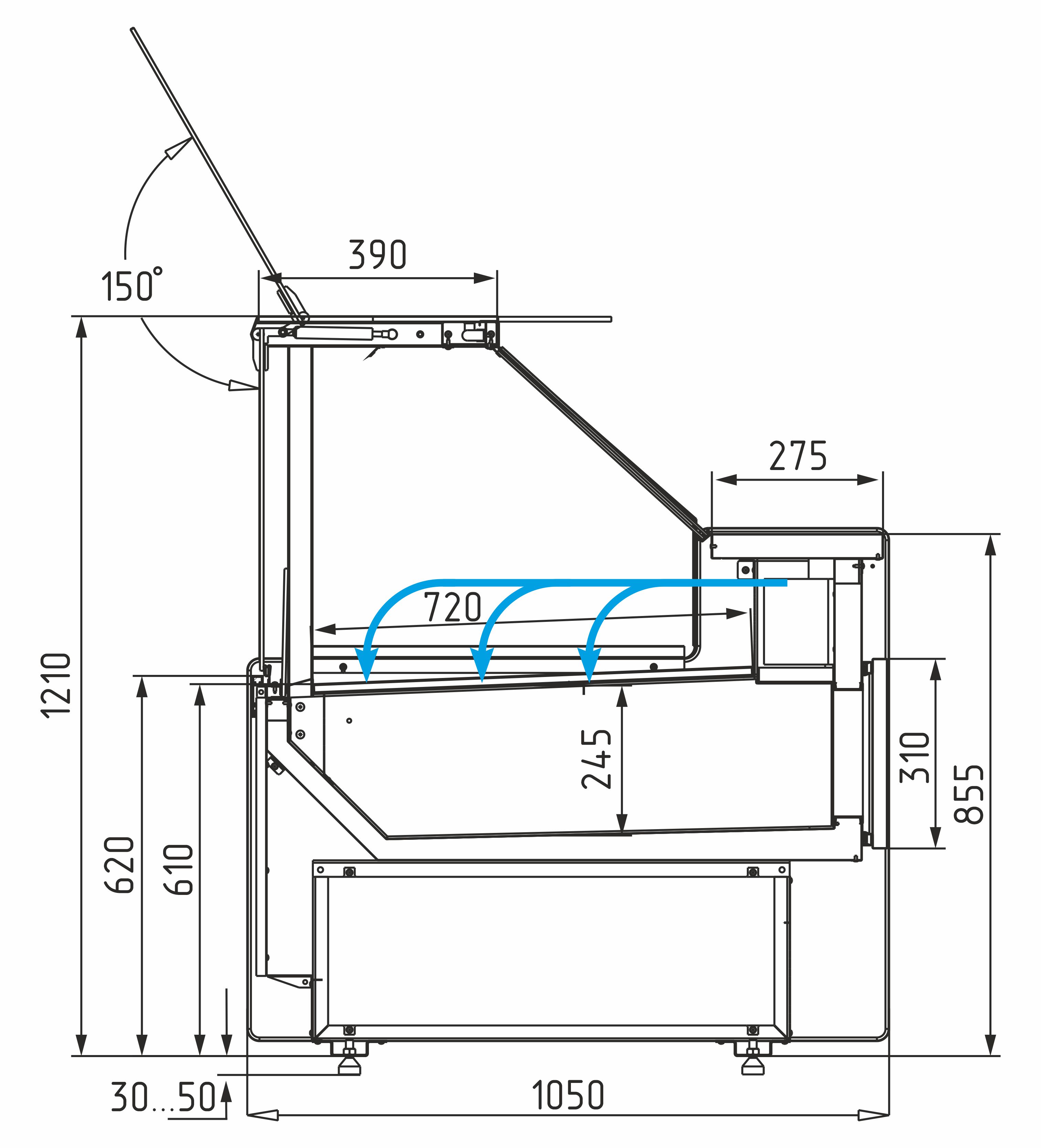 • Подъёмное фронтальное стекло и передние стеклопакеты – удобный доступ к продуктам и эффективное сохранение холода.