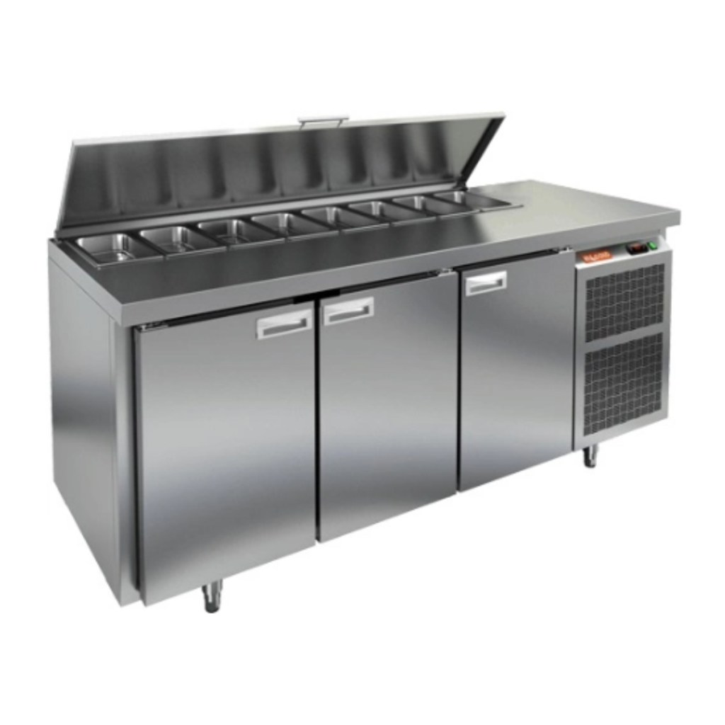 Каталог оборудования Холодильное оборудованиеСтолы охлаждаемыеСтолы холодильные для салатовСтол холодильный для салатов HiCold SL1-111GN (1/3) O с крышкой Стол холодильный для салатов HiCold SL1-111GN (1/3) O с крышкой Код товара: 064-520 Поделиться: WhatsAppTelegram СравнитьДобавить в КПВ избранное 0 168 291 ₽ В корзину 0 шт Под заказСамовывоз сегодня бесплатно Взять в кредит Купить в лизинг Получить консультацию в WhatsApp Описание Характеристики Отзывы 0 Инструкции 2 Стол холодильный для салатов HiCold SL1-111GN (1/3) О с крышкой предназначен для предприятий общественного питания и торговли. Он обеспечивает хранение и подготовку ингредиентов для пиццы, салатов и других блюд, а также охлаждение и кратковременное хранение скоропортящихся продуктов. Модель сочетает рабочую поверхность и холодильный объем, позволяя повару иметь все необходимые компоненты под рукой. Корпус и столешница выполнены из нержавеющей стали, обеспечивая надежность и долговечность. Особенности: Динамическая система охлаждения — равномерное распределение температуры внутри холодильного объема. Автоматическая оттайка — упрощает уход за оборудованием. Электронная панель управления — точная настройка температуры и режимов работы. 3 вместительные внутренние полки формата GN 1/1 — удобное хранение ингредиентов. Автоматические доводчики дверей с фиксатором открытого положения — комфорт и безопасность работы. Легкозаменяемые магнитные уплотнители — простота обслуживания. Открытая агрегатная часть — облегчает доступ для обслуживания. Регулируемые по высоте ножки — адаптация к рабочей поверхности. Столешница с крышкой, без борта, толщина столешницы и теплоизоляции 50 мм — надежная защита и удобство работы. Размер полки: 530×325мм (GN 1/1) Максимальная глубина гастроемкостей: 100 мм HiCold SL1-111GN (1/3) О с крышкой — многофункциональный и надежный стол для профессиональной кухни. Обеспечивает удобство работы, эффективное охлаждение и безопасное хранение продуктов. Мобильная модификация с колёсами позволяет легко перемещать стол, что делает его идеальным для ресторанов, кафе и пиццерий.Изображение товара, представленного на фото, может отличаться от его фактического вида. Показать все Габаритные размеры1835×700×850 ммДиапазон рабочей температурыот +2 до +10 °CРасположение агрегатаБоковое Материал столешницыНержавеющая Тип столаС дверьми Тип двериГлухая Объём505 лКоличество дверей3 штТип гастроемкостейGN 1/3 Размер полки530×325 ммНапряжение220 ВМощность0,46 кВтТип охлажденияДинамический Тип оттайкиАвтоматическая СтолешницаБез борта Вес нетто120 кгВес брутто183 кгБрендHicold Оставить отзыв Еще никто не оставил отзыв на этот товар Паспорт на HICOLD SL1-111GN О.pdfДекларация о соответствии.pdf Ранее просмотрено Под заказ 126 981 ₽ Стол холодильный для салатов HiCold SLE2-11SN (1/6) З с крышкой В наличии 120 862 ₽ Стол холодильный для салатов HiCold SLE1-11GN (1/3) О без крышки Под заказ 166 222 ₽ Стол холодильный для салатов HiCold SL1-11GN (1/3) М с крышкой Под заказ 201 682 ₽ Стол холодильный для салатов HiCold SL2-22GN (1/6) О без крышки Под заказ 107 200 ₽ Витрина кондитерская Carboma KC70 N 0,9-1 Light Паттерн (0108 Темный дуб) нейтральная