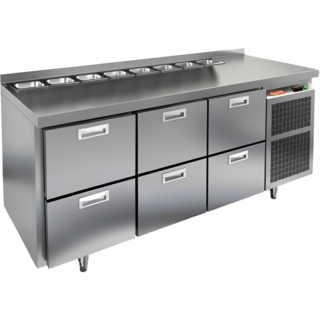 Каталог оборудования Холодильное оборудованиеСтолы охлаждаемыеСтолы холодильные для салатовСтол холодильный для салатов HiCold SL1-222GN (1/3) без крышки Стол холодильный для салатов HiCold SL1-222GN (1/3) без крышки Код товара: 064-845 Поделиться: WhatsAppTelegram СравнитьДобавить в КПВ избранное 0 255 412 ₽ В корзину 0 шт Под заказСамовывоз сегодня бесплатно Взять в кредит Купить в лизинг Получить консультацию в WhatsApp Описание Характеристики Отзывы 0 Инструкции 1 Стол холодильный для салатов HiCold SL1-222GN (1/3) без крышки предназначен для использования на предприятиях общественного питания и торговли. Он объединяет рабочую поверхность и охлаждаемый отсек, что делает его удобным решением для хранения, охлаждения и подготовки ингредиентов при приготовлении салатов, пиццы и других блюд. Такая конструкция позволяет повару работать быстрее и эффективнее, так как все необходимые продукты находятся под рукой. Корпус и столешница выполнены из прочной нержавеющей стали, устойчивой к коррозии и легко поддающейся санитарной обработке. Особенности модели: Электронная панель управления — точная настройка температурного режима. 6 выдвижных ящика — быстрое размещение и замена продуктов. Вместимость салат-бара — до 8 гастроемкостей глубиной до 100 мм. Автоматические доводчики дверей с фиксацией в открытом положении. Легкозаменяемые магнитные уплотнители — надежная герметичность. Открытая агрегатная часть — быстрый доступ для обслуживания. Регулируемые по высоте ножки — устойчивость даже на неровном полу. Толщина столешницы, борта и теплоизоляции — 50 мм, что обеспечивает прочность и энергоэффективность конструкции. HiCold SL1-222GN (1/3) бзе крышки — практичное и удобное решение для профессиональной кухни, обеспечивающее удобную подготовку и хранение ингредиентов.Изображение товара, представленного на фото, может отличаться от его фактического вида. Показать все Габаритные размеры1835×700×850 ммДиапазон рабочей температурыот +2 до +10 °CРасположение агрегатаБоковое Материал столешницыНержавеющая Тип столаС ящиками Объём505 лТип гастроемкостейGN 1/3 Количество ящиков6 штНапряжение220 ВМощность0,46 кВтТип охлажденияДинамическое Тип оттайкиАвтоматическая СтолешницаС бортом Габариты в упаковке2000×850×1000 ммВес нетто120 кгВес брутто140 кгБрендHicold Оставить отзыв Еще никто не оставил отзыв на этот товар Декларация о соответствии.pdf Ранее просмотрено Под заказ 201 502 ₽ Стол холодильный для салатов HiCold SLE3-22GN полипропилен, с крышкой Под заказ 89 661 ₽ Прилавок для подогрева тарелок Abat ПТЭ-70КМ(П)-80 кашир. Под заказ 162 270 ₽ Витрина холодильная Carboma GC110 VV 2,0-1 (ВХСр-2,0 Carboma CG 110 (динамика)) (1005 венге) Под заказ 127 791 ₽ Стол холодильный для салатов HiCold SLE1-11GN (1/3) О З с крышкой Под заказ 100 700 ₽ Витрина кондитерская Carboma KC70 N 0,6-1 Light Bread Паттерн (0106 Седой дуб) хлебная, со стеклом Под заказ 187 290 ₽ Горка холодильная Carboma FC20-07 VM 0,7-1 LIGHT фронт Х0 (версия 2.0) (9006-9005)