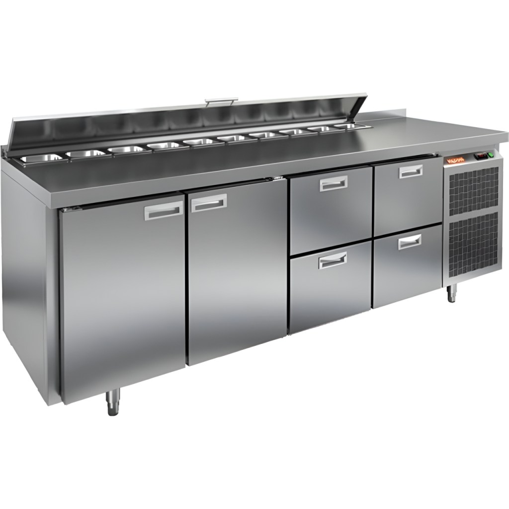 Каталог оборудования Холодильное оборудованиеСтолы охлаждаемыеСтолы холодильные для салатовСтол холодильный для салатов HiCold SL1-332GN (1/3) с крышкой Стол холодильный для салатов HiCold SL1-332GN (1/3) с крышкой Код товара: 064-851 Поделиться: WhatsAppTelegram СравнитьДобавить в КПВ избранное 0 290 692 ₽ В корзину 0 шт Под заказСамовывоз сегодня бесплатно Взять в кредит Купить в лизинг Получить консультацию в WhatsApp Описание Характеристики Отзывы 0 Инструкции 1 Стол холодильный для салатов HiCold SL1-332GN (1/3) предназначен для использования на предприятиях общественного питания и торговли. Он объединяет рабочую поверхность и охлаждаемый отсек, что делает его удобным решением для хранения, охлаждения и подготовки ингредиентов при приготовлении салатов, пиццы и других блюд. Такая конструкция позволяет повару работать быстрее и эффективнее, так как все необходимые продукты находятся под рукой. Корпус и столешница выполнены из прочной нержавеющей стали, устойчивой к коррозии и легко поддающейся санитарной обработке. Металлическая крышка защищает продукты от загрязнений и сохраняет их свежесть. Особенности модели: Электронная панель управления — точная настройка температурного режима. 8 выдвижных ящика — быстрое размещение и замена продуктов. Вместимость салат-бара — до 8 гастроемкостей глубиной до 100 мм. Автоматические доводчики — комфорт при загрузке/выгрузке. Легкозаменяемые магнитные уплотнители — надежная герметичность. Открытая агрегатная часть — быстрый доступ для обслуживания. Регулируемые по высоте ножки — устойчивость даже на неровном полу. Толщина столешницы, борта и теплоизоляции — 50 мм, что обеспечивает прочность и энергоэффективность конструкции. HiCold SL1-332GN (1/3) — практичное и удобное решение для профессиональной кухни, обеспечивающее удобную подготовку и хранение ингредиентов.Изображение товара, представленного на фото, может отличаться от его фактического вида. Показать все Габаритные размеры1835×700×850 ммДиапазон рабочей температурыот +2 до +10 °CРасположение агрегатаБоковое Материал столешницыНержавеющая Тип столаС дверьми и ящиками Тип двериГлухая Объём505 лКоличество дверей2 штТип гастроемкостейGN 1/3 Количество ящиков6 штРазмер полки530×325 ммНапряжение220 ВМощность0,46 кВтТип охлажденияДинамическое Тип оттайкиАвтоматическая СтолешницаС бортом Габариты в упаковке2000×850×1000 ммВес нетто120 кгВес брутто140 кгБрендHicold Оставить отзыв Еще никто не оставил отзыв на этот товар Декларация о соответствии.pdf Ранее просмотрено Под заказ 151 462 ₽ Стол холодильный для салатов HiCold SLS2-11GN (1/6) с крышкой Под заказ 165 772 ₽ Стол холодильный для салатов HiCold SL2-11GN (1/6) М с крышкой Под заказ 208 792 ₽ Стол холодильный для салатов HiCold SLE1-122GN (1/3) О с крышкой Под заказ 44 330 ₽ Прилавок для столовых приборов Abat ПСП‐70ПМ Под заказ 235 882 ₽ Стол холодильный для салатов HiCold SLE2-222GN (1/6) О без крышки Под заказ 126 981 ₽ Стол холодильный для салатов HiCold SLE2-11SN (1/6) З с крышкой В наличии 120 862 ₽ Стол холодильный для салатов HiCold SLE1-11GN (1/3) О без крышки