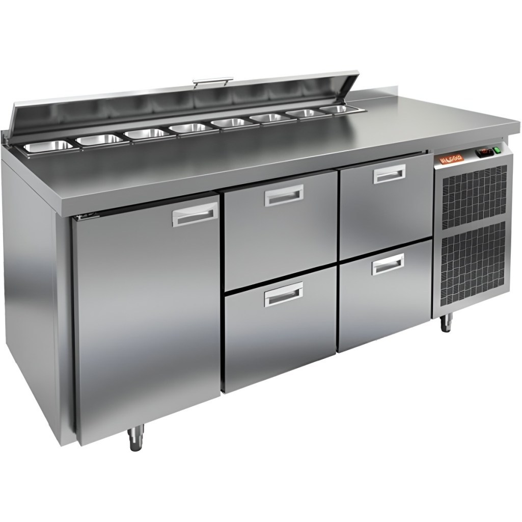 Каталог оборудования Холодильное оборудованиеСтолы охлаждаемыеСтолы холодильные для салатовСтол холодильный для салатов HiCold SL2-122SN (1/6) с крышкой Стол холодильный для салатов HiCold SL2-122SN (1/6) с крышкой Код товара: 064-834 Поделиться: WhatsAppTelegram СравнитьДобавить в КПВ избранное 0 227 782 ₽ В корзину 0 шт Под заказСамовывоз сегодня бесплатно Взять в кредит Купить в лизинг Получить консультацию в WhatsApp Описание Характеристики Отзывы 0 Стол холодильный для салатов HiCold SL2-122SN (1/6) с крышкой предназначен для использования на предприятиях общественного питания и торговли. Он подходит для хранения, обработки и кратковременного охлаждения ингредиентов, применяемых при приготовлении пиццы, салатов, закусок и других блюд. Модель совмещает охлаждаемый объем и рабочую поверхность, что значительно повышает удобство и скорость работы персонала. Корпус и столешница выполнены из прочной и гигиеничной нержавеющей стали, устойчивой к влаге, загрязнениям и механическим повреждениям. Металлическая крышка защищает продукты от загрязнений и сохраняет их свежесть. Особенности модели: Электронная панель управления — точная настройка температуры. Салат-бар на 8 гастроемкостей — быстрый доступ к ингредиентам. 4 выдвижных ящика — удобное размещение продуктов. 1 дверь с автоматическими доводчиками — комфортный доступ к холодильному отсеку. Съёмные магнитные уплотнители — герметичность и стабильная температура. Открытая агрегатная часть — лёгкое обслуживание. Регулируемые ножки — установка на любой поверхности. Глубина гастроемкостей до 150 мм, столешница и теплоизоляция — 50 мм. Высота борта — 50 мм — защита рабочей поверхности. HiCold SL2-122SN (1/6) с крышкой — универсальное и функциональное решение для профессиональной кухни, позволяющее оптимизировать рабочие процессы и повысить производительность за счет удобного хранения и быстрого доступа к ингредиентам.Изображение товара, представленного на фото, может отличаться от его фактического вида. Показать все Габаритные размеры1835×600×850 ммДиапазон рабочей температурыот +2 до +10 °CРасположение агрегатаБоковое Материал столешницыНержавеющая Тип столаС дверьми и ящиками Тип двериГлухая Объём435 лКоличество дверей1 штТип гастроемкостейGN 1/6 Количество ящиков4 штРазмер полки430×325 ммНапряжение220 ВМощность0,5 кВтТип охлажденияДинамическое Тип оттайкиАвтоматическая СтолешницаС бортом Габариты в упаковке2000×750×1000 ммВес нетто120 кгВес брутто170 кгБрендHicold Оставить отзыв Еще никто не оставил отзыв на этот товар Ранее просмотрено Под заказ 15 111 ₽ Ванна моечная с бортом МХМ МБ-1-0,45-0,8/0,8 (AISI 430, t=0,6) Под заказ 123 832 ₽ Стол холодильный для салатов HiCold SLE2-11GN (1/6) O с крышкой