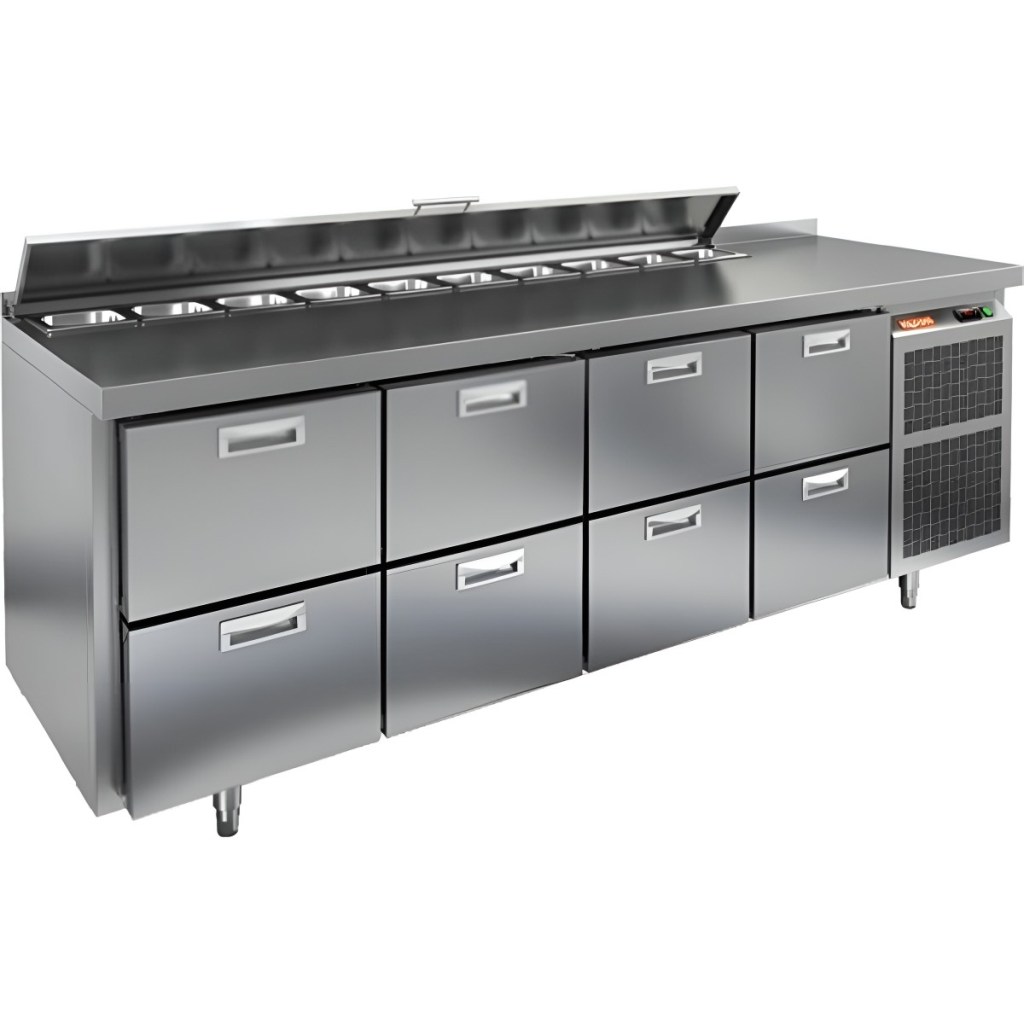 Каталог оборудования Холодильное оборудованиеСтолы охлаждаемыеСтолы холодильные для салатовСтол холодильный для салатов HiCold SL2-2222GN (1/6) с крышкой Стол холодильный для салатов HiCold SL2-2222GN (1/6) с крышкой Код товара: 064-815 Поделиться: WhatsAppTelegram СравнитьДобавить в КПВ избранное 0 320 122 ₽ В корзину 0 шт Под заказСамовывоз сегодня бесплатно Взять в кредит Купить в лизинг Получить консультацию в WhatsApp Описание Характеристики Отзывы 0 Инструкции 2 Стол холодильный для салатов HiCold SL2-2222GN (1/6) с крышкой предназначен для использования на предприятиях общественного питания и торговли. Он подходит для хранения, обработки и кратковременного охлаждения ингредиентов, применяемых при приготовлении пиццы, салатов, закусок и других блюд. Модель совмещает охлаждаемый объем и рабочую поверхность, что значительно повышает удобство и скорость работы персонала. Корпус и столешница выполнены из прочной и гигиеничной нержавеющей стали, устойчивой к влаге, загрязнениям и механическим повреждениям. Металлическая крышка защищает продукты от загрязнений и сохраняет их свежесть. Особенности модели: Электронная панель управления — точная настройка температуры. Салат-бар на 11 гастроемкостей — быстрый доступ к ингредиентам. 8 внутренних ящиков — удобное размещение и легкая замена продуктов. Автоматические доводчики дверей — комфортная эксплуатация. Съёмные магнитные уплотнители — герметичность и стабильная температура. Открытая агрегатная часть — лёгкое обслуживание. Регулируемые ножки — установка на любой поверхности. Глубина гастроемкостей до 150 мм, столешница и теплоизоляция — 50 мм. Высота борта — 50 мм — защита рабочей поверхности. HiCold SL2-2222GN (1/6) с крышкой — универсальное и функциональное решение для профессиональной кухни, позволяющее оптимизировать рабочие процессы и повысить производительность за счет удобного хранения и быстрого доступа к ингредиентам.Изображение товара, представленного на фото, может отличаться от его фактического вида. Показать все Габаритные размеры2280×700×850 ммДиапазон рабочей температурыот +2 до +10 °CРасположение агрегатаБоковое Материал столешницыНержавеющая Тип столаС ящиками Объём660 лТип гастроемкостейGN 1/6 Количество ящиков8 штНапряжение220 ВМощность0,48 кВтТип охлажденияДинамическое Тип оттайкиАвтоматическая СтолешницаС бортом Габариты в упаковке2420×850×1000 ммВес нетто155 кгВес брутто210 кгБрендHicold Оставить отзыв Еще никто не оставил отзыв на этот товар Паспорт на HICOLD SL2-2222GN.pdfДекларация о соответствии.pdf Ранее просмотрено Под заказ 127 432 ₽ Стол холодильный для салатов HiCold SLE2-11GN (1/6) З с крышкой Под заказ 201 682 ₽ Стол холодильный для салатов HiCold SL2-22GN (1/6) О без крышки Под заказ 107 200 ₽ Витрина кондитерская Carboma KC70 N 0,9-1 Light Паттерн (0108 Темный дуб) нейтральная