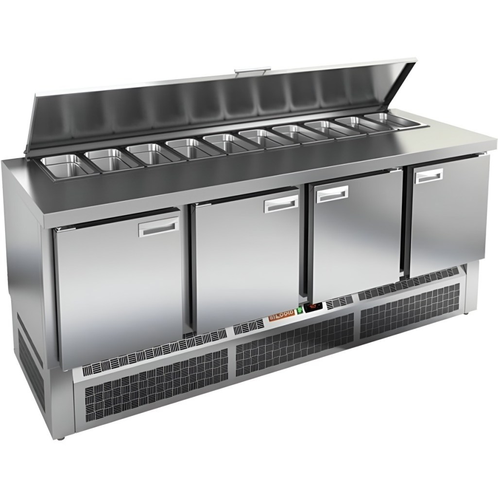 Каталог оборудования Холодильное оборудованиеСтолы охлаждаемыеСтолы холодильные для салатовСтол холодильный для салатов HiCold SLE1-11111GN (1/3) О с крышкой Стол холодильный для салатов HiCold SLE1-11111GN (1/3) О с крышкой Код товара: 064-545 Поделиться: WhatsAppTelegram СравнитьДобавить в КПВ избранное 0 172 162 ₽ В корзину 0 шт Под заказСамовывоз сегодня бесплатно Взять в кредит Купить в лизинг Получить консультацию в WhatsApp Описание Характеристики Отзывы 0 Инструкции 2 Стол холодильный для салатов HiCold SLE1-1111GN (1/3) О с крышкой предназначен для предприятий общественного питания и торговли. Он позволяет хранить и обрабатывать ингредиенты для пиццы, салатов и других блюд, а также охлаждать и кратковременно хранить скоропортящиеся продукты и напитки. Модель совмещает рабочую поверхность и охлаждаемый объем, что обеспечивает удобство работы повара: все необходимые компоненты всегда под рукой. Корпус и столешница выполнены из нержавеющей стали, что гарантирует долговечность и простоту ухода. Особенности: Динамическая система охлаждения — равномерное распределение температуры по всему объему. Автоматическая оттайка — упрощает уход за оборудованием. Электронная панель управления — удобная настройка температуры и режимов работы. 4 вместительные внутренние полки формата GN 1/1 — оптимальное хранение ингредиентов. Автоматические доводчики дверей с фиксатором открытого положения — комфорт и безопасность работы. Легкозаменяемые магнитные уплотнители — простота обслуживания. Открытая агрегатная часть — облегчает доступ для обслуживания. Регулируемые по высоте ножки — адаптация к рабочей поверхности. Размер полки: 530×325 мм (GN 1/1) Максимальная глубина гастроемкостей: 100 мм Столешница без борта и с крышкой: толщина столешницы и теплоизоляции — 50 мм, высота борта — 50 мм HiCold SLE1-1111GN (1/3) О с крышкой — надежный и удобный стол для профессиональной кухни. Он обеспечивает эффективное охлаждение и хранение ингредиентов, а комбинированная рабочая поверхность с холодильным объемом упрощает работу повара, делая процесс приготовления быстрее и удобнее.Изображение товара, представленного на фото, может отличаться от его фактического вида. Показать все Габаритные размеры1970×700×800 ммДиапазон рабочей температурыот +2 до +10 °CРасположение агрегатаНижнее Материал столешницыНержавеющая Тип столаС дверьми Тип двериГлухая Объём505 лКоличество дверей4 штТип гастроемкостейGN 1/3 Размер полки530×325 ммНапряжение220 ВМощность0,46 кВтТип охлажденияДинамический Тип оттайкиАвтоматическая СтолешницаС бортом Вес нетто135 кгВес брутто195 кгБрендHicold Оставить отзыв Еще никто не оставил отзыв на этот товар Паспорт на HICOLD SLE1-1111GN (1/3) О.pdfДекларация о соответствии.pdf Ранее просмотрено Под заказ 127 432 ₽ Стол холодильный для салатов HiCold SLE2-11GN (1/6) З с крышкой Под заказ 201 682 ₽ Стол холодильный для салатов HiCold SL2-22GN (1/6) О без крышки Под заказ 107 200 ₽ Витрина кондитерская Carboma KC70 N 0,9-1 Light Паттерн (0108 Темный дуб) нейтральная