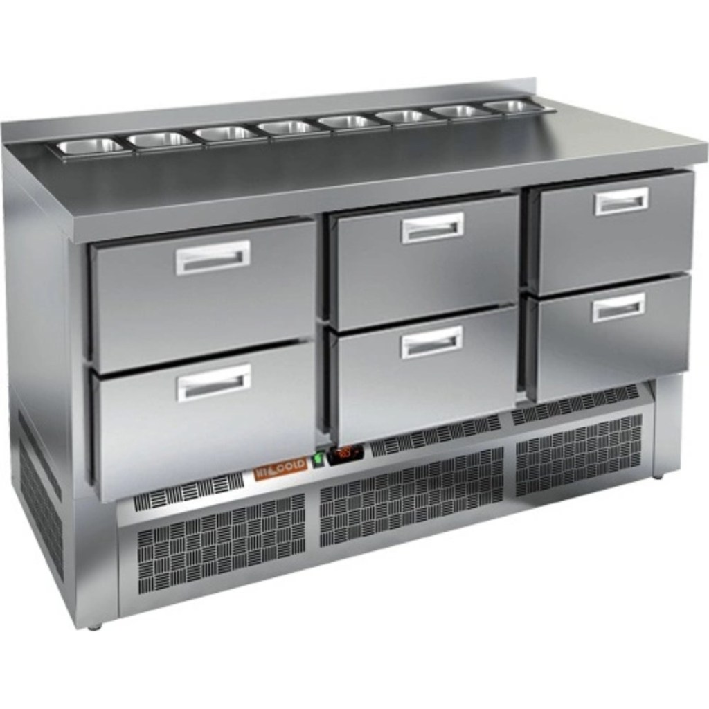 Каталог оборудования Холодильное оборудованиеСтолы охлаждаемыеСтолы холодильные для салатовСтол холодильный для салатов HiCold SLE2-222GN (1/6) без крышки Стол холодильный для салатов HiCold SLE2-222GN (1/6) без крышки Код товара: 064-889 Поделиться: WhatsAppTelegram СравнитьДобавить в КПВ избранное 0 235 882 ₽ В корзину 0 шт Под заказСамовывоз сегодня бесплатно Взять в кредит Купить в лизинг Получить консультацию в WhatsApp Описание Характеристики Отзывы 0 Стол холодильный для салатов HiCold SLE2-222GN (1/6) без крышки — это профессиональный салатный стол, предназначенный для использования в кафе, ресторанах, пиццериях и других предприятиях общественного питания. Он совмещает в себе просторную рабочую поверхность и охлаждаемый объем, обеспечивая удобство и эффективность при приготовлении различных блюд — от салатов до пиццы. Благодаря корпусу и столешнице из нержавеющей стали, оборудование устойчиво к коррозии, легко очищается и соответствует санитарным требованиям. Ключевые особенности: Электронная панель управления — обеспечивает точное регулирование температуры и удобство в эксплуатации. 6 выдвижных ящиков — обеспечивают удобное распределение ингредиентов и быстрый доступ к ним в процессе работы. Салат-бар вмещает до 8 гастроемкостей — оптимален для широкого ассортимента заготовок. Автоматические доводчики дверей с фиксацией — повышают удобство использования, особенно при загрузке и выгрузке продуктов. Магнитные уплотнители — легко заменяются и обеспечивают плотное прилегание, предотвращая утечку холода. Открытая агрегатная часть — облегчает техническое обслуживание. Регулируемые ножки — позволяют установить стол на любой поверхности, компенсируя неровности пола. Глубина гастроемкостей — до 100 мм, толщина столешницы — 50 мм, высота борта — 50 мм, толщина теплоизоляции — 50 мм — обеспечивают стабильное охлаждение и прочность конструкции. HiCold SLE2-222GN (1/6) без крышки — это функциональный и вместительный салатный стол, который идеально подходит для профессиональных кухонь с интенсивной загрузкой. Он сочетает в себе надежность, удобство и продуманную конструкцию для максимальной производительности на рабочем месте.Изображение товара, представленного на фото, может отличаться от его фактического вида. Показать все Габаритные размеры1485×700×850 ммДиапазон рабочей температурыот +2 до +10 °CРасположение агрегатаНижнее Материал столешницыНержавеющая Тип столаС ящиками Объём375 лТип гастроемкостейGN 1/6 Количество ящиков6 штНапряжение220 ВМощность0,2 кВтТип охлажденияДинамическое Тип оттайкиАвтоматическая СтолешницаС бортом Габариты в упаковке1700×850×1080 ммВес нетто115 кгВес брутто160 кгБрендHicold Оставить отзыв Еще никто не оставил отзыв на этот товар Ранее просмотрено Под заказ 185 032 ₽ Стол холодильный для салатов HiCold SLE2-22GN (1/6) О с крышкой Под заказ 123 832 ₽ Стол холодильный для салатов HiCold SLE2-11GN (1/6) O с крышкой
