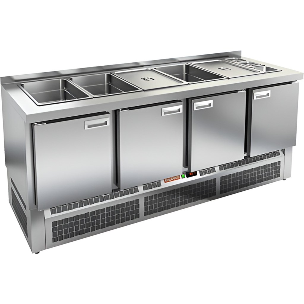 Каталог оборудования Холодильное оборудованиеСтолы охлаждаемыеСтолы холодильные для салатовСтол холодильный для салатов HiCold SLE3-1111GN без крышки Стол холодильный для салатов HiCold SLE3-1111GN без крышки Код товара: 064-924 Поделиться: WhatsAppTelegram СравнитьДобавить в КПВ избранное 0 193 890 ₽ В корзину 0 шт В наличииСамовывоз сегодня бесплатно Взять в кредит Купить в лизинг Получить консультацию в WhatsApp Описание Характеристики Отзывы 0 Инструкции 2 Стол холодильный для салатов HiCold SLE3-1111GN без крышки предназначен для использования на предприятиях общественного питания и торговли. Он сочетает в себе функции охлаждения и хранения ингредиентов, используемых при приготовлении салатов, закусок, сэндвичей и других блюд, требующих кратковременного поддержания температуры. Модель обеспечивает удобный доступ к продуктам и позволяет повару работать максимально эффективно. Корпус и столешница изготовлены из нержавеющей стали, что гарантирует долговечность конструкции, устойчивость к коррозии и соответствие санитарным нормам. Особенности модели: Электронная панель управления позволяет точно настраивать температурный режим Четыре вместительные внутренние полки формата GN 1/1 обеспечивают удобную организацию пространства Вместимость салат-бара — 5 гастроемкостей формата GN 1/1 и 3 гастроемкости формата GN 1/6 Поддерживается использование гастроемкостей глубиной до 100 мм Двери оснащены автоматическими доводчиками с фиксацией в открытом положении Легкозаменяемые магнитные уплотнители обеспечивают герметичность и простоту обслуживания Открытая агрегатная часть упрощает доступ для сервисного обслуживания Регулируемые по высоте ножки позволяют адаптировать стол под любую рабочую поверхность Толщина столешницы и теплоизоляции составляет 50 мм, что гарантирует прочность и энергоэффективность Наличие борта повышает гигиеничность работы и облегчает поддержание чистоты на кухне. HiCold SLE3-1111GN без крышки — это надёжный и практичный салатный стол, который сочетает в себе охлаждаемый отсек и удобную рабочую зону. Модель идеально подходит для интенсивной эксплуатации в профессиональных кухнях, обеспечивая быстрое обслуживание и надёжное хранение ингредиентов.Изображение товара, представленного на фото, может отличаться от его фактического вида. Показать все Габаритные размеры1970×700×1055 ммДиапазон рабочей температурыот +2 до +10 °CРасположение агрегатаНижнее Материал столешницыНержавеющая Тип столаС дверьми Тип двериГлухая Объём570 лКоличество дверей4 штТип гастроемкостейGN 1/1, GN 1/6 Размер полки530×325 (GN 1/1) ммНапряжение220 ВМощность0,46 кВтТип охлажденияДинамическое Тип оттайкиАвтоматическая СтолешницаС бортом Вес нетто133 кгВес брутто189 кгБрендHicold Оставить отзыв Еще никто не оставил отзыв на этот товар Паспорт на HICOLD SLE3-1111GN.pdfДекларация о соответствии.pdf Ранее просмотрено 84 323 ₽ Шкаф холодильный универсальный МХМ П-390УС 123 472 ₽ Стол морозильный HiCold SN 11/BT W P (без агрегата) Популярные товары 725 010 ₽ Котел пищеварочный Аbat КПЭМ-100-ОМ2 3 403 403 ₽ Камера с прерыванием расстойки без пола Apach Bakery Line RP60802P6C 163 560 ₽ Льдогенератор кубикового льда Abat ЛГ-46/25К-02 воздушное охлаждение