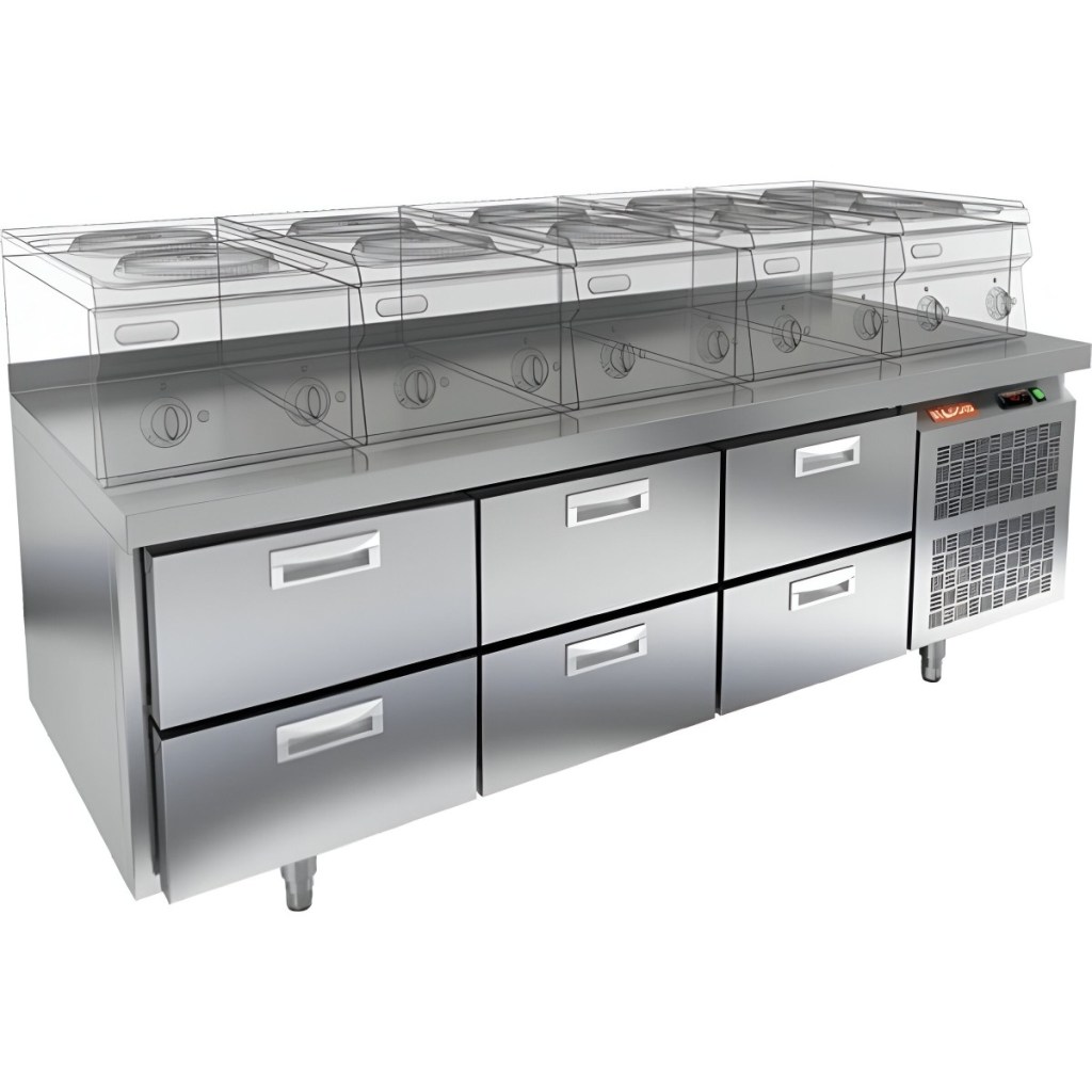 Каталог оборудования Холодильное оборудованиеСтолы охлаждаемыеСтолы холодильные под тепловое оборудованиеСтол охлаждаемый HiCold GN 222/TN LT SH под тепловое оборудование Стол охлаждаемый HiCold GN 222/TN LT SH под тепловое оборудование Код товара: 065-447 Поделиться: WhatsAppTelegram СравнитьДобавить в КПВ избранное 0 222 292 ₽ В корзину 0 шт Под заказСамовывоз сегодня бесплатно Взять в кредит Купить в лизинг Получить консультацию в WhatsApp Описание Характеристики Отзывы 0 Инструкции 2 Стол охлаждаемый HiCold GN 222/TN LT SH под тепловое оборудование предназначен для обработки продуктов и временного хранения скоропортящихся ингредиентов и напитков на предприятиях общественного питания и торговли. Устройство совмещает функции холодильной камеры и рабочей поверхности, что делает его особенно удобным для профессиональных кухонь. Столешница рассчитана на установку теплового оборудования: под рабочей поверхностью встроен ДСП-лист, который укрепляет конструкцию и препятствует проникновению тепла внутрь. Такое решение обеспечивает дополнительную жесткость, позволяет рационально использовать рабочее пространство и повышает эффективность работы на кухне. Особенности: 6 выдвижных ящиков обеспечивают удобный доступ к продуктам и рациональную организацию пространства Автоматические доводчики дверей с фиксатором открытого положения улучшают эргономику работы и помогают сохранить холод внутри камеры. Легкозаменяемые магнитные уплотнители способствуют герметичности и простоте технического обслуживания. Конструкция на низких ножках обеспечивает стабильность и удобство эксплуатации. Толщина столешницы — 50 мм обеспечивает надёжную опору при интенсивной эксплуатации. Высота борта — 50 мм препятствует скатыванию продуктов и инвентаря. Толщина теплоизоляции — 50 мм способствует энергоэффективности и поддержанию стабильной температуры. Температурный диапазон окружающей среды — от 12 до 37 °C, что делает оборудование универсальным в разных климатических условиях. HiCold GN 222/TN LT SH сочетает функциональность, надёжность и простоту в обслуживании. Идеально подходит для кухонь ресторанов, кафе и других заведений общепита, где важно одновременно эффективно хранить продукты и иметь под рукой рабочее пространство.Изображение товара, представленного на фото, может отличаться от его фактического вида. Показать все Габаритные размеры1835×700×610 ммДиапазон рабочей температурыот -2 до +10 °CМатериал столешницыНержавеющая Расположение агрегатаБоковое Объём375 лТип столаС ящиками Количество ящиков6 штНапряжение220 ВМощность0,46 кВтТип охлажденияДинамический Тип оттайкиАвтоматическая СтолешницаС бортом Габариты в упаковке2000×850×850 ммВес нетто124 кгВес брутто170 кгБрендHicold Оставить отзыв Еще никто не оставил отзыв на этот товар Паспорт на HICOLD GN 222TN LT.pdfДекларация о соответствии.pdf Похожие товары Перейти в каталог Под заказ 137 619 ₽ Стол холодильный среднетемпературный Polair TD3GN-G Под заказ 108 164 ₽ Стол холодильный среднетемпературный HURAKAN HKN-GN3TN С этим товаром покупают Под заказ 389 300 ₽ Шкаф холодильный для вызревания мяса Polair CS107 Meat (Тип 1) Ранее просмотрено Под заказ 200 512 ₽ Стол морозильный HiCold GN 1111/BT LT под тепловое оборудование Под заказ 436 032 ₽ Компрессорно-конденсаторный блок Север AHM-ZF25 Под заказ 340 030 ₽ Компрессорно-конденсаторный блок Север MGSF 529 S Под заказ Цена по запросу Горка хо