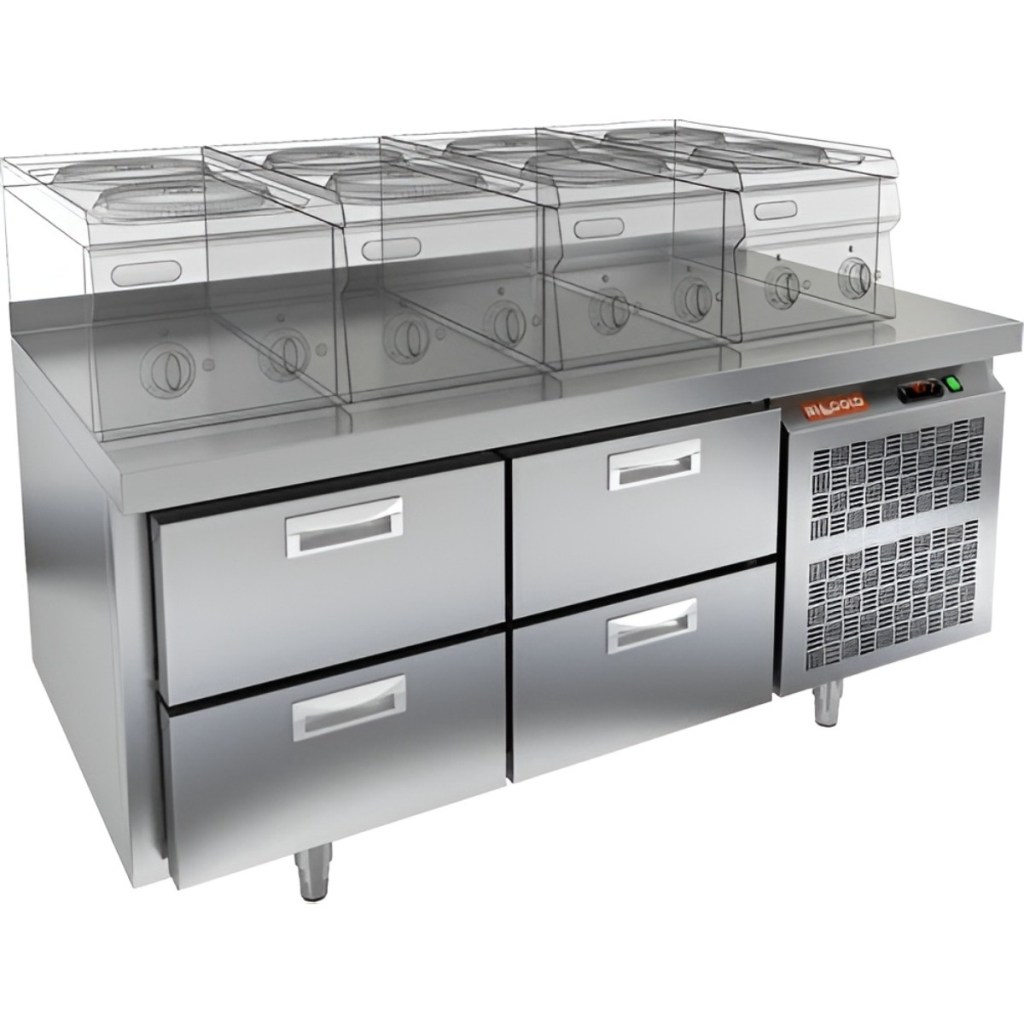 Каталог оборудования Холодильное оборудованиеСтолы охлаждаемыеСтолы холодильные под тепловое оборудованиеСтол охлаждаемый HiCold SN 22/TN LT О под тепловое оборудование Стол охлаждаемый HiCold SN 22/TN LT О под тепловое оборудование Код товара: 065-539 Поделиться: WhatsAppTelegram СравнитьДобавить в КПВ избранное 0 172 162 ₽ В корзину 0 шт Под заказСамовывоз сегодня бесплатно Взять в кредит Купить в лизинг Получить консультацию в WhatsApp Описание Характеристики Отзывы 0 Инструкции 2 Стол охлаждаемый HiCold SN 22/TN LT О под тепловое оборудование предназначен для обработки ингредиентов и временного хранения скоропортящихся продуктов и напитков на предприятиях общественного питания и торговли. Устройство совмещает функции рабочей поверхности и холодильной камеры. Столешница рассчитана на установку теплового оборудования: под рабочей поверхностью встроен ДСП-лист, который укрепляет конструкцию и препятствует проникновению тепла внутрь. Такое решение обеспечивает дополнительную жесткость, позволяет рационально использовать рабочее пространство и повышает эффективность работы на кухне. Внимание! На фото показан стол с бортом. Данная модель поставляется без борта. Особенности: 4 выдвижных ящика — обеспечивают удобный доступ к продуктам и инвентарю Автоматические доводчики дверей с фиксатором открытого положения повышают эргономику и способствуют сохранению холода. Легкозаменяемые магнитные уплотнители обеспечивают плотное прилегание дверей и лёгкость в обслуживании. Открытая агрегатная часть упрощает доступ к компрессору при техническом обслуживании. Регулируемые по высоте ножки позволяют установить стол на неровной поверхности. Столешница без борта, толщина 50 мм — увеличенная рабочая площадь, устойчивая к нагрузкам и механическому воздействию. Толщина теплоизоляции — 50 мм способствует энергоэффективности и стабильному температурному режиму. HiCold SN 22/TN LT О — это надёжное и удобное оборудование, сочетающее охлаждение и рабочее пространство. Благодаря продуманной конструкции и совместимости с гастроемкостями GN 1/1, стол станет практичным решением для кухни любого профессионального уровня.Изображение товара, представленного на фото, может отличаться от его фактического вида. Показать все Габаритные размеры1390×600×675 ммДиапазон рабочей температурыот -2 до +10 °CМатериал столешницыНержавеющая Расположение агрегатаБоковое Объём220 лТип столаС ящиками Количество ящиков4 штРазмер полки530×325 ммНапряжение220 ВМощность0,22 кВтТип охлажденияДинамический Тип оттайкиАвтоматическая СтолешницаБез борта Габариты в упаковке1550×750×850 ммВес нетто125 кгВес брутто147 кгБрендHicold Оставить отзыв Еще никто не оставил отзыв на этот товар Паспорт на HICOLD SN 22TN LT О.pdfДекларация о соответствии.pdf Похожие товары Перейти в каталог В наличии 77 661 ₽ Стол холодильный среднетемпературный HiCold GN 11/TN W Под заказ 125 670 ₽ Стол холодильный среднетемпературный Abat СХС-70-01 с бортом (дверь, дверь) С этим товаром покупают В наличии 201 690 ₽ Шкаф морозильный Полюс Carboma F1400 В наличии 195 030 ₽ Плита индукционная Аbat КИП-47Н Ранее просмотрено Под заказ 193 492 ₽ Стол охлаждаемый HiCold GN 122/TN LT О под тепловое оборудование