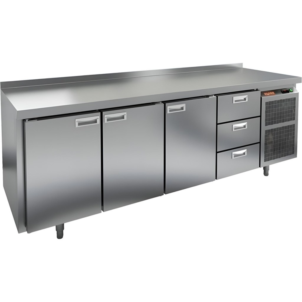 Каталог оборудования Холодильное оборудованиеСтолы охлаждаемыеСтолы холодильные среднетемпературныеСтол холодильный среднетемпературный HiCold GN 1113/TN Стол холодильный среднетемпературный HiCold GN 1113/TN Код товара: 001-328 Поделиться: WhatsAppTelegram СравнитьДобавить в КПВ избранное 0 213 292 ₽ В корзину 0 шт Под заказСамовывоз сегодня бесплатно Взять в кредит Купить в лизинг Получить консультацию в WhatsApp Описание Характеристики Отзывы 0 Инструкции 2 Стол холодильный среднетемпературный HiCold GN 1113/TN предназначен для подготовки ингредиентов и кратковременного хранения скоропортящихся продуктов и напитков на предприятиях общественного питания и торговли. Оборудование оснащено удобной электронной панелью управления, позволяющей точно регулировать рабочие параметры. Корпус и столешница выполнены из нержавеющей стали, устойчивой к коррозии и легко очищающейся. В комплект входят 3 полки. Особенности: 3 распашные двери обеспечивают быстрый и удобный доступ к охлаждаемому объему. 3 выдвижные секции позволяют рационально организовать внутреннее пространство и повысить производительность. Автоматические доводчики дверей с фиксатором открытого положения повышают комфорт при загрузке и выгрузке продуктов. Легкозаменяемые магнитные уплотнители гарантируют герметичность и облегчают обслуживание. Регулируемые по высоте ножки позволяют установить стол на неровных поверхностях. Толщина столешницы — 50 мм обеспечивает прочность и устойчивость к механическим нагрузкам. Высота борта — 50 мм предотвращает скатывание продуктов и жидкости с рабочей поверхности. Толщина теплоизоляции — 50 мм способствует стабильному поддержанию температуры и снижению энергопотребления. Температура окружающей среды — от 12 до 37 °C, что делает оборудование универсальным для различных условий. HiCold GN 1113/TN — это профессиональное оборудование для кухонь, объединяющее удобство работы, продуманную конструкцию и надёжность хранения. Подходит для интенсивной эксплуатации в сфере общепита.Изображение товара, представленного на фото, может отличаться от его фактического вида. Показать все Габаритные размеры2280×700×850 ммДиапазон рабочей температурыот -2 до +10 °CРасположение агрегатаБоковое Материал столешницыНержавеющая Тип столаС дверьми и ящиками Тип двериГлухая Объём660 лКоличество дверей3 штКоличество полок3 штКоличество ящиков3 штРазмер полки530×325 ммНапряжение220 ВТип охлажденияДинамический Тип оттайкиАвтоматическая СтолешницаС бортом Вес нетто145 кгБрендHicoldВсе холодильные столы HicoldВсе нержавеющие холодильные столы Все холодильные столы с бортом Оставить отзыв Еще никто не оставил отзыв на этот товар Паспорт на HICOLD GN 1113/TN.pdfДекларация о соответствии.pdf Похожие товары Перейти в каталог Под заказ 259 192 ₽ Стол холодильный среднетемпературный HiCold GN 1133/TN В наличии 209 041 ₽ Стол холодильный среднетемпературный TEFCOLD BK310 В наличии 132 149 ₽ Стол холодильный среднетемпературный Cooleq GN4100TN Под заказ 197 992 ₽ Стол холодильный среднетемпературный HiCold GNG 1111 HT С этим товаром покупают Под заказ 196 123 ₽ Шкаф холодильный Abat ШХ-1,4-01 нерж. АкцияВ наличии 21 014 ₽ Индукционная плита HURAKAN HKN-ICF70D Ранее просмотрено Под заказ 79 911 ₽ Стол холодильный среднетемпературный HiCold GN 1/TN W В наличии 77 661 ₽ Стол холодильный среднетемпературный HiCold GN 11/TN W В наличии 182 685 ₽ Стол холодильный среднетемпературный Ta