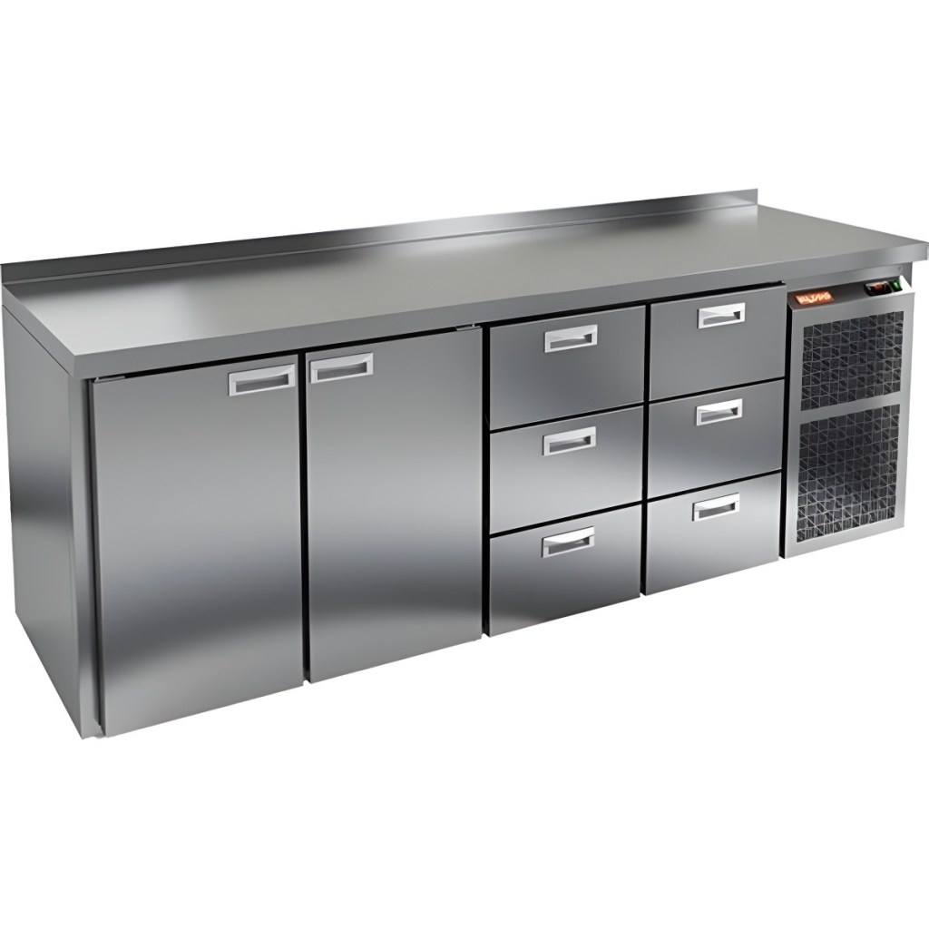 Каталог оборудования Холодильное оборудованиеСтолы охлаждаемыеСтолы холодильные среднетемпературныеСтол холодильный среднетемпературный HiCold GN 1133 BR2 TN Стол холодильный среднетемпературный HiCold GN 1133 BR2 TN Код товара: 062-299 Поделиться: WhatsAppTelegram СравнитьДобавить в КПВ избранное 0 275 931 ₽ В корзину 0 шт Под заказСамовывоз сегодня бесплатно Взять в кредит Купить в лизинг Получить консультацию в Max Описание Характеристики Отзывы 0 Стол холодильный среднетемпературный HiCold GN 1133 BR2 TN сочетает рабочую поверхность для раскатки теста и подготовки ингредиентов с камерой для охлаждения и кратковременного хранения скоропортящихся продуктов и напитков. Это оборудование отлично подходит для предприятий общественного питания, обеспечивая удобство и высокую производительность. Особенности: Увеличенный объём камеры для хранения большего количества продуктов. Климатическое исполнение Pro Line обеспечивает работу при температуре до +40 °C. Полки и направляющие выполнены по стандарту GN для совместимости с профессиональным оборудованием. Прочный цельнозаливной корпус из нержавеющей стали с 50 мм изоляцией для высокой герметичности и долговечности. Надёжный электронный блок управления с несколькими режимами оттаивания для стабильной работы. Вентилятор повышенной мощности обеспечивает равномерное и быстрое охлаждение. Интеллектуальная система автоматического размораживания. Термическое выпаривание конденсата предотвращает накопление влаги. Энергоэффективный компрессор снижает затраты на электроэнергию. Упрощённый доступ к агрегатам для быстрого и удобного сервисного обслуживания. Двери оборудованы доводчиками для мягкого и плотного закрытия. Регулируемые по высоте низкие ножки обеспечивают устойчивость на любой поверхности. Полки рассчитаны на нагрузку до 50 кг, что позволяет хранить тяжелые продукты. Высота борта 50 мм предотвращает падение продуктов со столешницы. HiCold GN 1133 BR2 TN — это надежное и эргономичное решение для профессиональных кухонь, обеспечивающее эффективное охлаждение и удобство в работе. Высокое качество материалов и продуманные технические решения делают этот холодильный стол практичным, энергоэффективным и простым в обслуживании.Изображение товара, представленного на фото, может отличаться от его фактического вида. Показать все Габаритные размеры2395×700×850 ммДиапазон рабочей температурыот -2 до +10 °CРасположение агрегатаБоковое Материал столешницыНержавеющая Тип столаС дверьми и ящиками Тип двериГлухая Объём730 лКоличество дверей2 штКоличество полок2 штКоличество ящиков6 штРазмер полки530×325 ммНапряжение220 ВМощность0,51 кВтТип охлажденияДинамический Тип оттайкиАвтоматическая СтолешницаС бортом Вес нетто192 кгВес брутто211 кгБрендHicoldВсе холодильные столы HicoldВсе нержавеющие холодильные столы Все холодильные столы с бортом Оставить отзыв Еще никто не оставил отзыв на этот товар Похожие товары Перейти в каталог Под заказ 79 911 ₽ Стол холодильный среднетемпературный HiCold GN 1/TN W Под заказ 107 046 ₽ Стол холодильный среднетемпературный Abat СХС-70 с бортом (дверь) С этим товаром покупают В наличии 93 502 ₽ Шкаф холодильный Полюс Carboma R560 В наличии 58 095 ₽ Витрина холодильная для ингредиентов HICOLD VRTU 1835 1/3