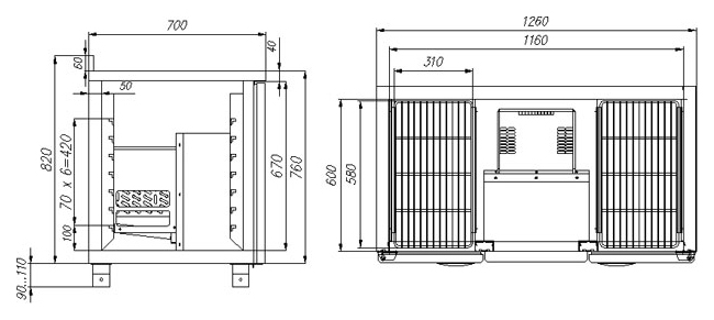 Стол морозильный Carboma T70 L2-1 (2GN/LT Carboma) с бортом (0430-2 корпус нерж)