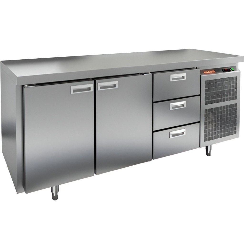 Каталог оборудования Холодильное оборудованиеСтолы охлаждаемыеСтолы морозильные низкотемпературныеСтол морозильный HiCold GN 113/BT O Стол морозильный HiCold GN 113/BT O Код товара: 065-066 Поделиться: WhatsAppTelegram СравнитьДобавить в КПВ избранное 0 220 852 ₽ В корзину 0 шт Под заказСамовывоз сегодня бесплатно Взять в кредит Купить в лизинг Получить консультацию в WhatsApp Описание Характеристики Отзывы 0 Инструкции 2 Стол морозильный HiCold GN113/BT О сочетает в себе удобную рабочую поверхность и вместительную морозильную камеру. Верхняя часть используется для раскатки теста и подготовки ингредиентов, а внутренняя камера предназначена для заморозки и хранения продуктов и полуфабрикатов. Стол оснащен двумя глухими дверями и тремя выдвижными ящиками, что обеспечивает удобный доступ к продуктам и рациональное использование внутреннего пространства. Оборудование идеально подходит для предприятий общественного питания. Особенности: Совместимость с GN-стандартом — полки, направляющие и стойки полностью интегрируются с профессиональным кухонным оборудованием. Прочный цельнозаливной корпус из нержавеющей стали с 50 мм изоляцией обеспечивает высокую герметичность и жесткость конструкции. Столешница без борта для удобной работы с крупными и длинными заготовками. Электронный блок управления с повышенной надежностью и несколькими режимами оттаивания. Вентилятор увеличенной мощности и принудительная вентиляция по всему объему камеры для равномерного и быстрого охлаждения. Интеллектуальная система размораживания и термическое выпаривание конденсата снижают затраты на обслуживание. Экономичный компрессор нового поколения снижает энергопотребление. Облегченный доступ к агрегату упрощает сервисное обслуживание. Двери с доводчиками и ПЭН предотвращают примерзание и обеспечивают плотное закрытие. Регулируемые по высоте ножки для устойчивости на разных поверхностях. Максимальная нагрузка на полку — 50 кг. Высота борта рабочей поверхности — 50 мм. Температура окружающей среды: 12–32 °C. HiCold GN113/BT О — это надежный и функциональный морозильный стол, обеспечивающий удобство работы и эффективное хранение продуктов. Он идеально подходит для интенсивной эксплуатации на профессиональных кухнях ресторанов, кафе и предприятий общественного питания.Изображение товара, представленного на фото, может отличаться от его фактического вида. Показать все Габаритные размеры1835×700×850 ммДиапазон рабочей температурыот -18 до -10 °CРасположение агрегатаБоковое Материал столешницыНержавеющая Тип столаС дверьми и ящиками Тип двериГлухая Объём505 лКоличество дверей2 штКоличество ящиков3 штНапряжение220 ВМощность0,6 кВтТип охлажденияДинамический Тип оттайкиАвтоматическая СтолешницаБзе борта Габариты в упаковке200×845×995 ммВес нетто210 кгВес брутто230 кгБрендHicoldВсе морозильные столы HicoldВсе морозильные столы без борта Оставить отзыв Еще никто не оставил отзыв на этот товар Паспорт на HICOLD GN113/BT О.pdfДекларация о соответствии.pdf Похожие товары Перейти в каталог Под заказ 166 404 ₽ Стол морозильный Abat СХН-70-02 без борта (дверь, дверь, дверь) Под заказ 156 861 ₽ Стол морозильный HiCold GN 111/BT W С этим товаром покупают Под заказ 176 862 ₽ Шкаф холодильный Abat ШХ-1,4 Ранее просмотрено В наличии 89 976 ₽ Моноблок холодильный среднетемпературный Polair MM115S