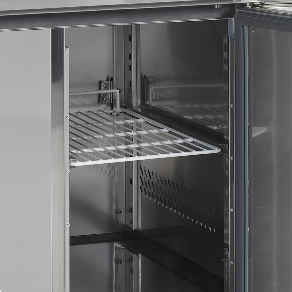 Каталог оборудования Холодильное оборудованиеСтолы охлаждаемыеСтолы морозильные низкотемпературныеСтол морозильный TEFCOLD CF7310 Стол морозильный TEFCOLD CF7310 Код товара: 010-257 Поделиться: WhatsAppTelegram СравнитьДобавить в КПВ избранное 0 218 857 ₽ В корзину 0 шт В наличииСамовывоз сегодня бесплатно Взять в кредит Купить в лизинг Получить консультацию в WhatsApp Описание Характеристики Отзывы 0 Стол морозильный TEFCOLD CF7310 — профессиональное оборудование для раскатки теста, обработки, заморозки и долговременного хранения продуктов, полуфабрикатов, напитков и мороженого на предприятиях общественного питания и торговли. Корпус и внутренняя отделка выполнены из нержавеющей стали AISI 304, что обеспечивает долговечность, гигиеничность и лёгкость ухода. Особенности модели: Динамическое охлаждение — равномерное распределение холода по всему объёму Автоматическое размораживание — поддержание стабильной работы без образования наледи Электронный термостат и градусник — точное управление температурой Хладагент R404a, подзарядка — 0,09 кг Съёмная столешница с бортом — удобство работы и уборки Самозакрывающиеся двери 3 полки GN1/1 (530 × 325 мм) — эффективная организация внутреннего пространства Регулируемые по высоте ножки — устойчивость на любой поверхности Климатический класс 4 — работа при температуре до +30 °C Полезный объём: 402 л Мощность: 0,7 кВт Энергопотребление: 10,15 кВт/сутки Внутренние размеры: 1337 × 530 × 589 мм Уровень шума: 42 дБ TEFCOLD CF7310 — надёжный и функциональный морозильный стол для профессиональных кухонь. Он сочетает рабочую поверхность для раскатки теста с вместительной морозильной камерой, обеспечивая удобство работы, долговременное хранение продуктов и стабильный температурный режим.Изображение товара, представленного на фото, может отличаться от его фактического вида. Показать все Габаритные размеры1795×700×980 ммДиапазон рабочей температурыот -20 до -10 °CРасположение агрегатаБоковое Материал столешницыНержавеющая Тип столаС дверьми Тип двериГлухая Общий объем417 лПолезный объем402 лКоличество дверей3 штРазмер полки530×325 ммНапряжение230 ВРасход электроэнергии в сутки6,95 кВт/сутТип охлажденияДинамический Тип оттайкиАвтоматическая Климатический класс4 ХладагентR404a СтолешницаС бортом Уровень шума42 дБГабариты в упаковке1830×750×1010 ммВес нетто152 кгВес брутто162 кгБрендTefcold Оставить отзыв Еще никто не оставил отзыв на этот товар Похожие товары Перейти в каталог Под заказ 125 817 ₽ Стол морозильный HURAKAN HKN-GN3BT Под заказ 166 404 ₽ Стол морозильный Abat СХН-70-02 без борта (дверь, дверь, дверь) С этим товаром покупают В наличии 201 690 ₽ Шкаф морозильный Полюс Carboma F1400 Ранее просмотрено В наличии 53 290 ₽ Витрина холодильная для ингредиентов HICOLD VRTU 1390 к PZ3 (1/3) Под заказ 174 780 ₽ Шкаф холодильный универсальный Carboma V700С INOX Под заказ 108 360 ₽ Витрина морозильная Carboma GC75 SL 1,0-1 фронт нестандартный цвет В наличии 140 243 ₽ Шкаф холодильный Tatra TRC700 TN Под заказ 59 662 ₽ Витрина холодильная для ингредиентов HICOLD VRTU 1915 к PZ4 (1/3) Под заказ 234 540 ₽ Горка холодильная Carboma FC20-07 VV 1,3-1 0030 STANDARD фронт X1 (версия 2.0) (9006-9005) (бок металл с зеркалом) Под заказ 312 030 ₽ Горка холодильная Carboma FC20-07 VV 1,9-1 0030 STANDARD фронт X1 (версия 2.0) (9006-9005) (бок металл с зеркалом)