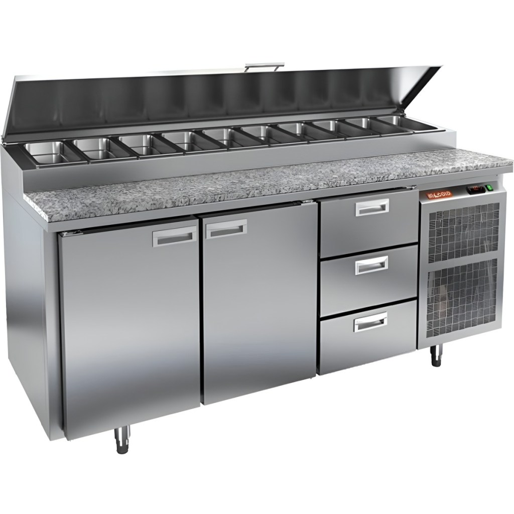 Каталог оборудования Холодильное оборудованиеСтолы охлаждаемыеСтолы холодильные для пиццыСтол холодильный для пиццы HiCold PZ1-113GN (1/3H) камень Стол холодильный для пиццы HiCold PZ1-113GN (1/3H) камень Код товара: 064-693 Поделиться: WhatsAppTelegram СравнитьДобавить в КПВ избранное 0 292 762 ₽ В корзину 0 шт Под заказСамовывоз сегодня бесплатно Взять в кредит Купить в лизинг Получить консультацию в WhatsApp Описание Характеристики Отзывы 0 Инструкции 2 Стол холодильный для пиццы HiCold PZ1-113GN (1/3H) камень — профессиональное оборудование для ресторанов, кафе и предприятий торговли. Он совмещает рабочую поверхность для раскатки теста и подготовки ингредиентов с охлаждаемым блоком для кратковременного хранения продуктов и напитков. Каменная столешница устойчива к повреждениям, не впитывает запахи и легко очищается. Корпус выполнен из нержавеющей стали, обеспечивая долговечность и гигиеничность. Основные особенности: Каменная столешница — прочная, устойчивая к повреждениям и легко моется Динамическая система охлаждения — равномерное распределение холода Автоматическая оттайка — поддержка стабильной работы без наледи Электронная панель управления — точная настройка температуры и режимов 2 вместительные полки формата GN 1/1 3 выдвижных ящика для хранения дополнительных ингредиентов Автоматические доводчики дверей с фиксатором открытого положения — удобство загрузки и выгрузки Легкозаменяемые магнитные уплотнители — поддержание герметичности Открытая агрегатная часть — облегчённый доступ к техническим элементам Регулируемые по высоте ножки — установка по уровню Максимальная глубина гастроёмкостей: 150 мм (крайняя правая — 100 мм) Глубина рабочей поверхности: 324 мм Толщина столешницы и теплоизоляции: 50 мм Вместимость салат-бара: до 10 гастроёмкостей Стол холодильный HiCold PZ1-113GN (1/3H) камень — надёжный и функциональный стол для пиццы и салатов. Каменная рабочая поверхность, охлаждаемый блок, полки и ящики для хранения делают его удобным для интенсивной работы на профессиональной кухне.Изображение товара, представленного на фото, может отличаться от его фактического вида. Показать все Габаритные размеры1835×700×1000 ммДиапазон рабочей температурыот +2 до +10 °CРасположение агрегатаБоковое Материал столешницыГранитная Тип столаС дверьми и ящиками Тип двериГлухая Объём505 лТип гастроемкостейGN 1/3 Количество дверей2 штКоличество ящиков3 штРазмер полки530×325 ммНапряжение220 ВМощность0,5 кВтТип охлажденияДинамическое Тип оттайкиАвтоматическая Габариты в упаковке2000×850×1140 ммВес нетто172 кгВес брутто200 кгБрендHicoldВсе холодильные столы для пиццы Hicold Оставить отзыв Еще никто не оставил отзыв на этот товар Паспорт на HICOLD PZ1-113GN.pdfДекларация о соответствии.pdf Ранее просмотрено Под заказ 278 960 ₽ Прилавок для холодных закусок Abat Аста ПВВ(Н)-70КМ-С-03-НШ