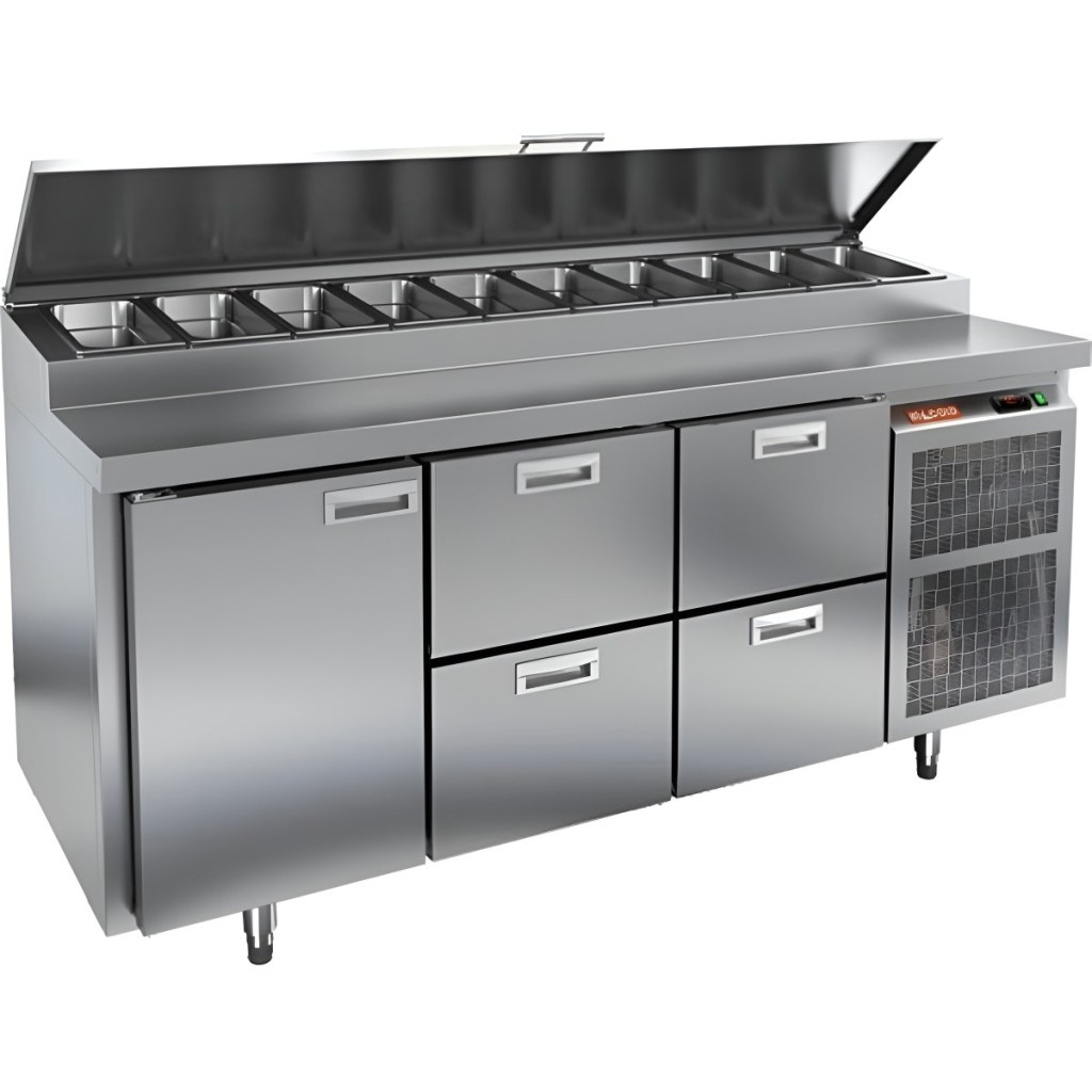 Стол холодильный HiCold PZ1-122GN (1/3) — надёжный и функциональный холодильный стол для пиццы и салатов. Продуманная организация хранения и удобство эксплуатации обеспечивают быстрый доступ к ингредиентам и высокую производительность на профессиональной кухне.