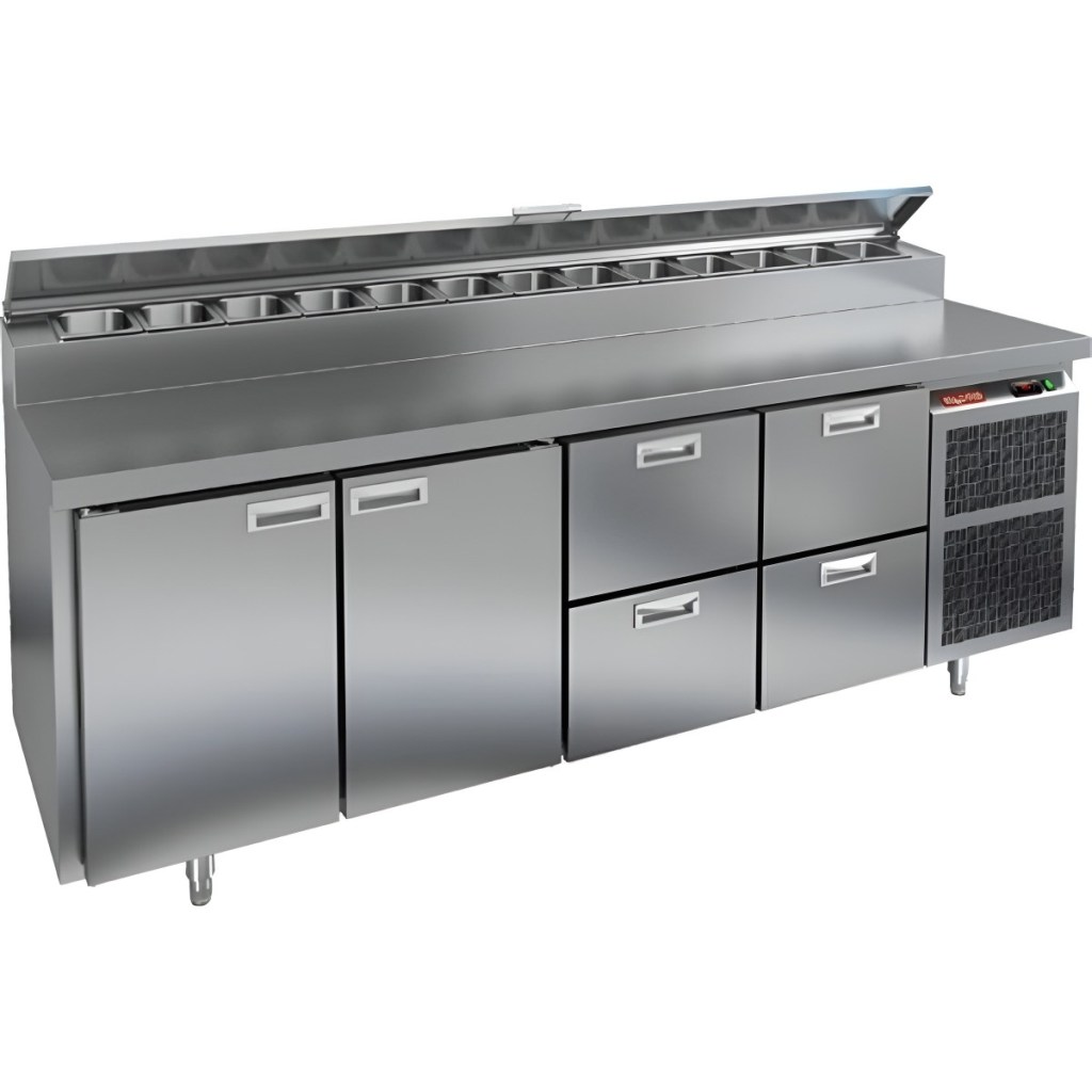 Каталог оборудования Холодильное оборудованиеСтолы охлаждаемыеСтолы холодильные для пиццыСтол холодильный для пиццы HiCold PZ2-1122GN (1/6) Стол холодильный для пиццы HiCold PZ2-1122GN (1/6) Код товара: 064-749 Поделиться: WhatsAppTelegram СравнитьДобавить в КПВ избранное 0 311 842 ₽ В корзину 0 шт Под заказСамовывоз сегодня бесплатно Взять в кредит Купить в лизинг Получить консультацию в WhatsApp Описание Характеристики Отзывы 0 Стол холодильный для пиццы HiCold PZ2-1122GN (1/6) предназначен для кухонь и предприятий общественного питания. Он используется для раскатки теста, подготовки ингредиентов для пиццы, салатов и других блюд, а также для охлаждения и кратковременного хранения скоропортящихся продуктов. Модель совмещает нержавеющую рабочую поверхность и охлаждаемый отсек с 2 дверями и 4 ящиками, обеспечивая удобный доступ к ингредиентам и эффективное хранение. Особенности: Динамическая система охлаждения для равномерного поддержания температуры Автоматическая оттайка для удобного обслуживания Электронная панель управления для точной настройки параметров Вместительная внутренняя полка формата GN 1/1 (размер 530×325 мм) 2 двери и 4 вместительных ящика для хранения ингредиентов Автоматические доводчики дверей с фиксатором открытого положения Легкозаменяемые магнитные уплотнители для герметичности Открытая агрегатная часть для легкого доступа к компонентам Регулируемые по высоте ножки для устойчивости Нержавеющая столешница глубиной 486 мм и толщиной 50 мм — устойчива к коррозии, легко моется и гигиенична Толщина теплоизоляции: 50 мм Максимальная глубина гастроемкостей: 100 мм Вместимость салат-бара: 13 гастроемкости Стол холодильный для пиццы HiCold PZ2-1122GN (1/6) — это надежный и функциональный стол для пиццы. Он объединяет рабочую поверхность и охлаждаемый отсек, упрощает хранение и подготовку ингредиентов, обеспечивает удобство работы повара и соответствует стандартам профессиональной кухни. Изображение товара, представленного на фото, может отличаться от его фактического вида. Показать все Габаритные размеры2280×700×1000 ммДиапазон рабочей температурыот +2 до +10 °CРасположение агрегатаБоковое Материал столешницыНержавеющая Тип столаС дверьми и ящиками Тип двериГлухая Объём570 лТип гастроемкостейGN 1/6 Количество дверей2 штКоличество ящиков4 штРазмер полки530×325 ммНапряжение220 ВМощность0,51 кВтТип охлажденияДинамическое Тип оттайкиАвтоматическая Габариты в упаковке2420×850×1080 ммВес нетто208 кгВес брутто240 кгБрендHicoldВсе холодильные столы для пиццы HicoldВсе нержавеющие холодильные столы для пиццы Оставить отзыв Еще никто не оставил отзыв на этот товар Ранее просмотрено Под заказ 275 842 ₽ Стол холодильный для пиццы HiCold PZ1-33GN (1/3) Под заказ 342 442 ₽ Стол холодильный для пиццы HiCold PZ2-1133GN (1/6) Под заказ 278 362 ₽ Стол холодильный для пиццы HiCold PZE1-222GN (1/3)