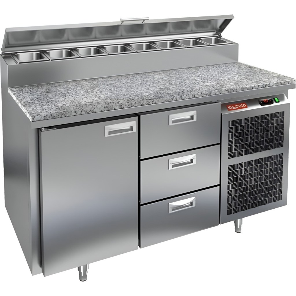 Каталог оборудования Холодильное оборудованиеСтолы охлаждаемыеСтолы холодильные для пиццыСтол холодильный для пиццы HiCold PZ2-13/GN (1/6H) камень Стол холодильный для пиццы HiCold PZ2-13/GN (1/6H) камень Код товара: 064-763 Поделиться: WhatsAppTelegram СравнитьДобавить в КПВ избранное 0 253 792 ₽ В корзину 0 шт Под заказСамовывоз сегодня бесплатно Взять в кредит Купить в лизинг Получить консультацию в WhatsApp Описание Характеристики Отзывы 0 Инструкции 2 Стол холодильный для пиццы HiCold PZ2-13/GN (1/6H) камень предназначен для кухонь и предприятий общественного питания. Он используется для раскатки теста, подготовки ингредиентов для пиццы, салатов и других блюд, а также для охлаждения и кратковременного хранения скоропортящихся продуктов. Модель совмещает гранитную рабочую поверхность и охлаждаемый отсек с 1 дверью и 3 ящиками, обеспечивая удобный доступ к ингредиентам и эффективное хранение. Особенности: Динамическая система охлаждения для равномерного поддержания температуры Автоматическая оттайка для удобного обслуживания Электронная панель управления для точной настройки параметров Вместительная внутренняя полка формата GN 1/1 (размер 530×325 мм) 1 дверь и 3 вместительных ящика для хранения ингредиентов Автоматические доводчики дверей с фиксатором открытого положения Легкозаменяемые магнитные уплотнители для герметичности Открытая агрегатная часть для легкого доступа к компонентам Регулируемые по высоте ножки для устойчивости Гранитная столешница глубиной 486 мм и толщиной 50 мм — устойчива к повреждениям, легко моется и гигиенична Толщина теплоизоляции: 50 мм Максимальная глубина гастроемкостей: 100 мм Вместимость салат-бара: 8 гастроемкости Стол холодильный HiCold PZ2-13/GN (1/6H) камень — это надежное и функциональное решение для профессиональной кухни. Он объединяет рабочую поверхность и охлаждаемый отсек, упрощает хранение и подготовку ингредиентов, повышает удобство работы повара и соответствует стандартам предприятий общественного питания.Изображение товара, представленного на фото, может отличаться от его фактического вида. Показать все Габаритные размеры1390×700×1000 ммДиапазон рабочей температурыот +2 до +10 °CРасположение агрегатаБоковое Материал столешницыГранитная Тип столаС дверьми и ящиками Тип двериГлухая Объём350 лТип гастроемкостейGN 1/6 Количество дверей1 штКоличество ящиков3 штРазмер полки530×325 ммНапряжение220 ВМощность0,2 кВтТип охлажденияДинамическое Тип оттайкиАвтоматическая Габариты в упаковке1550×850×1140 ммВес нетто165 кгВес брутто185 кгБрендHicoldВсе холодильные столы для пиццы Hicold Оставить отзыв Еще никто не оставил отзыв на этот товар Паспорт на HICOLD PZ2-13/GN.pdfДекларация о соответствии.pdf Ранее просмотрено Под заказ 256 672 ₽ Стол холодильный для пиццы HiCold PZ2-111GN (1/6) камень со стеклом Под заказ 246 862 ₽ Стол холодильный для пиццы HiCold PZ2-111/GN (1/6H) камень (R290)