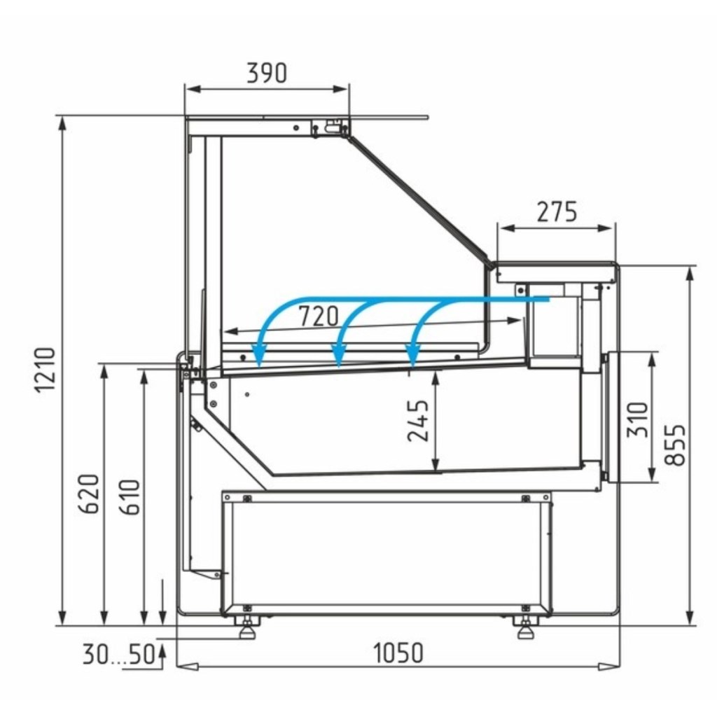 Боковые панели со стеклопакетом в комплект не входят и приобретаются отдельно. Для установки витрины как отдельностоящего оборудования необходимо докупить боковины. При формировании линейной компоновки нескольких витрин с одинаковым температурным режимом требуется всего две боковины на всю линию.