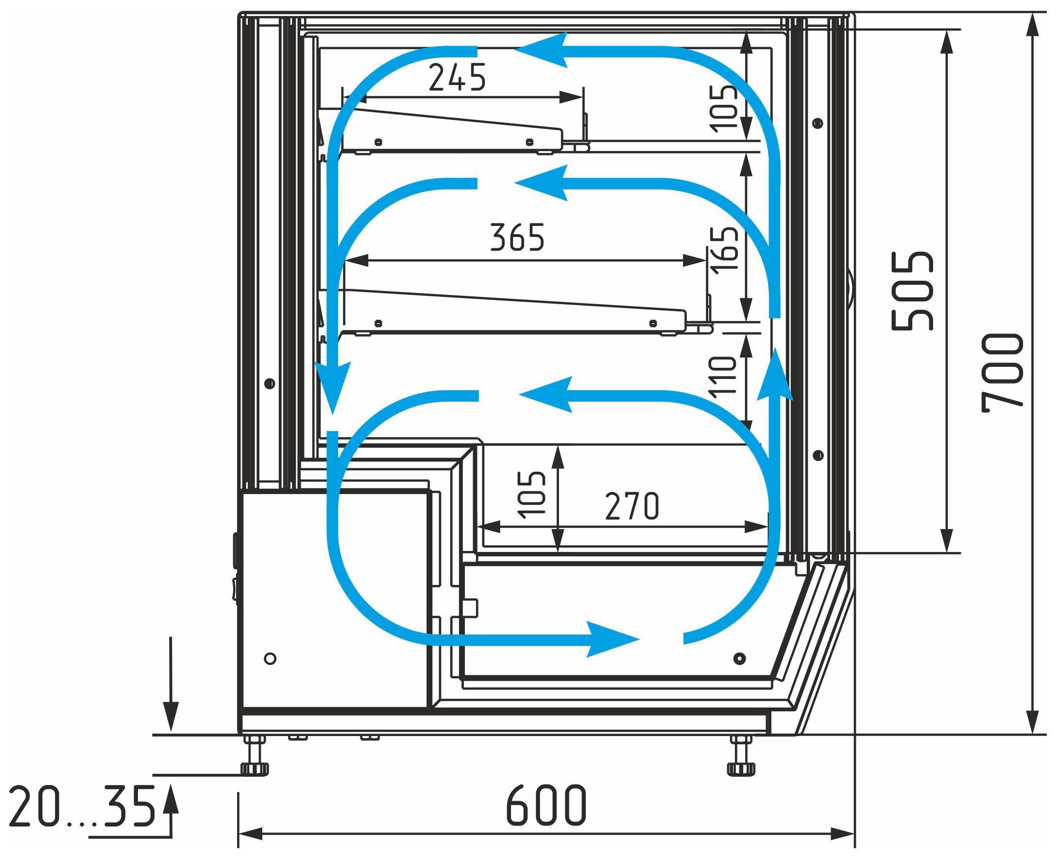 Каталог оборудования Холодильное оборудованиеВитрины настольныеВитрина холодильная настольная Carboma AC59 VM 0,7-1 (слайдер) (0430) Витрина холодильная настольная Carboma AC59 VM 0,7-1 (слайдер) (0430) Код товара: 063-685 Поделиться: WhatsAppTelegram СравнитьДобавить в КПВ избранное 0 106 741 ₽ В корзину 0 шт Под заказСамовывоз сегодня бесплатно Взять в кредит Купить в лизинг Получить консультацию в WhatsApp Описание Характеристики Отзывы 0 Инструкции 2 Витрина холодильная настольная Carboma AC59 VM 0,7-1 (слайдер) (0430) — это универсальная охлаждаемая витрина для демонстрации и кратковременного хранения кондитерских изделий, десертов, салатов и напитков. Идеально подходит для небольших кафе, баров и заведений общественного питания. Модель оснащена закалёнными боковыми стеклопакетами, раздвижными фронтальными и задними дверцами, а также двумя охлаждаемыми полками-решётками с ограничителями. Может устанавливаться на столешницу или встраиваться в барную стойку. Корпус выполнен из стали с ППУ-теплоизоляцией, а рабочая поверхность — из нержавеющей стали. Ключевые особенности: Динамическая система охлаждения — равномерное распределение температуры Компрессор европейского производства — высокая надёжность Электронный блок управления Carel — точный контроль температурного режима Выпариватель конденсата — исключает необходимость ручного слива Возможность установки полок под углом 5° — улучшенная презентация Фронтальные и задние раздвижные дверцы — удобный доступ с обеих сторон Боковая LED-подсветка — подчёркивает структуру десертов и изделий Современный кубический дизайн — стильный внешний вид Регулируемые ножки-опоры — устойчивость на любых поверхностях Настольное или встраиваемое размещение — гибкость установки Стабильный температурный режим — для безопасного хранения продуктов Глубина нижней зоны выкладки: 270 мм Глубина полок: 365 мм (верхняя) / 245 мм (нижняя) Длина нижнего поддона: 666 мм Максимальная высота выкладки продуктов: нижний поддон — 150 мм, полки — 100 мм Температура окружающей среды: от 12 до 25 °C Относительная влажность воздуха: до 60% Carboma AC59 VM 0,7-1 (слайдер) (0430) — это надёжная и эргономичная охлаждаемая витрина с удобным доступом с обеих сторон, которая обеспечит качественную демонстрацию и сохранность продукции в кафе, барах и точках продаж.Изображение товара, представленного на фото, может отличаться от его фактического вида. Показать все Габаритные размеры700×600×735 ммДиапазон рабочей температурыот +4 до +10 °CДлина700 ммГлубина600 ммВысота735 ммРазмещениеГоризонтальная Площадь выкладки0,56 м²Полезный объем витрины0,06 м³Тип охлажденияДинамическое Климатический класс3 ХладагентR290, R600a Напряжение220 ВЭнергопотребление в сутки4 кВтКоличество полок2 штГабариты в упаковке850×750×890 ммВес нетто78 кгВес брутто86 кгБрендПолюсВсе витрины настольные CarbomaВсе холодильные настольные витриныВсе стеклянные настольные витрины Оставить отзыв Еще никто не оставил отзыв на этот товар Брошюра на Carboma AMRA AC59 VM.pdfСхема Carboma AMRA AC59 VM 0,7-1 Slider.jpg Похожие товары Перейти в каталог Под заказ 127 400 ₽ Витрина кондитерская Carboma KC70 VH 1,3-1 Light Chocolate (9006-9005) (ВХСв-0,9д Carboma Сube ТЕХНО) для шоколада Под заказ 216 500 ₽ Витрина кондитерская Carboma KC71-110 VV 1,2-2 (9005) открытая Под заказ 134 992 ₽ Витрина кондитерская Ангара Кондитер КУБ XL Д 1,5 Под заказ 90 100 ₽ Витрина кондитерская Carboma KC70 N 0,9-1 Light (версия 2.0) (9005-0109) нейтраль